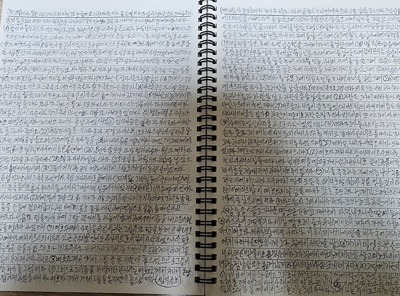 꽤 열심히 쓰셨다. 어머니 성경필사 노트는 지금 몇 권 째인지 이제 세는 것을 포기했다. 몇 년을 쓰셨으니 양도 제법 된다.