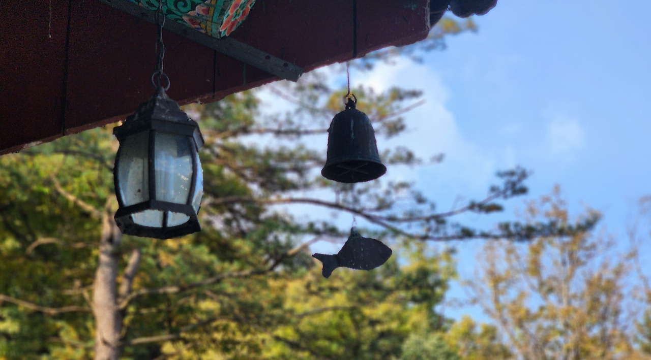'댕그랑, 댕그랑' 맑고 청아한 소리가 울려 쳐다보니 저 위 처마 끝에 매달려 있는 풍경소리가 무척 아름답다. 푸드덕푸드덕 날아오르는 한 무리의 새들까지 그 소리가 어우러져 더 마음속 평안함을 느꼈다.
