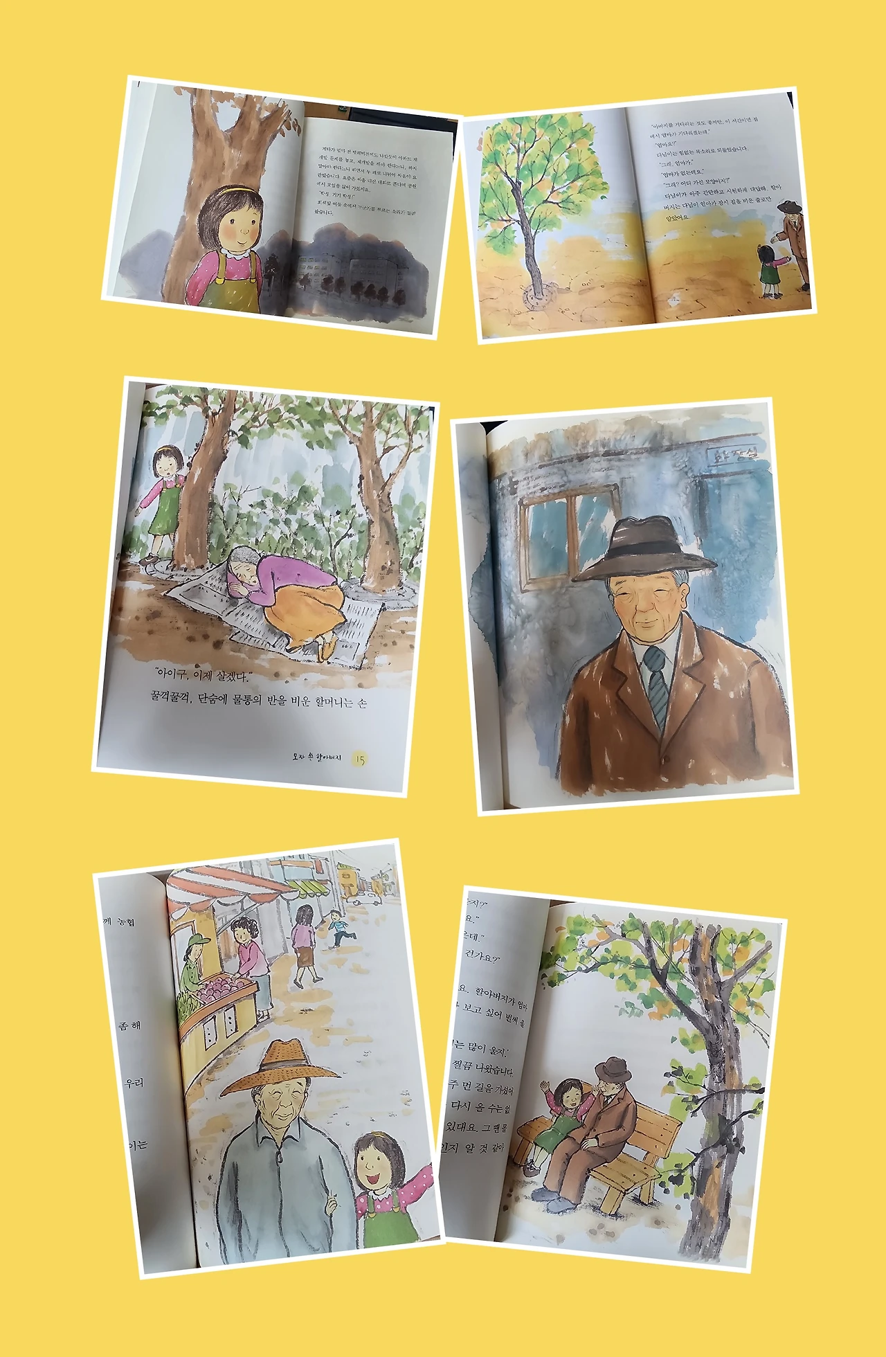 그러던 어느 날 공원에서 한 할아버지를 만나고 친해지게 돼요. 할아버지가 쓰고 계신 모자가 멋지다고 생각했던 다님이는 할아버지에게 이렇게 말해요.