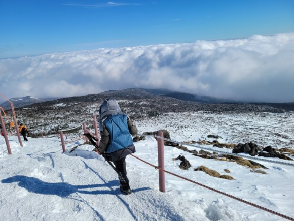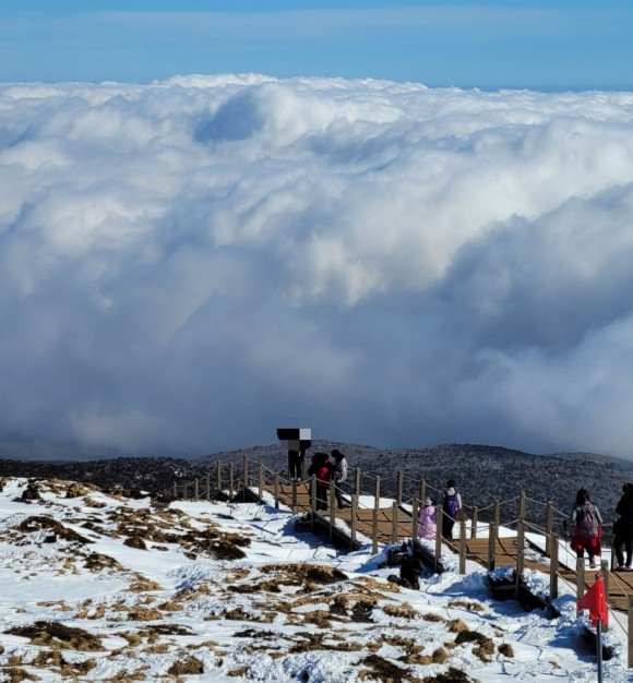 산행코스는 탐방 안내소 -> 속밭 대피소-> 진달래 대피소 -> 정상 (성판악 코스 원점회귀)