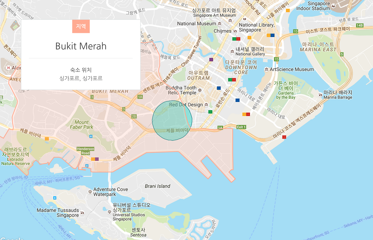 마리나 베이 샌즈가 있는 곳과 센토사 섬의 중간에 위치해있다. 차이나타운도 가깝고 이번에 가고자 하는 코워킹 스페이스 'Working Capitol'도 걸어서 7분 거리에 있다. Outram Park MRT 역이 집 근처고 보라색과 녹색라인을 탈 수 있는 환승역이다. 얼마나 좋은 위치인가!!