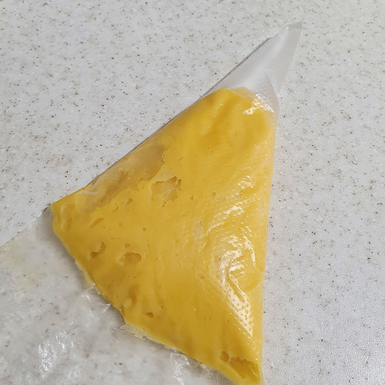 미리 만들어 둔 옥수수 밀크로 커스터드를 만든다. 초당옥수수의 옅은 향과 노란 빛깔은 커스터드라는 이름으로 진하게 농축된다. 충분히 식은 커스터드에 생크림을 섞어 기분 좋은 가벼움을 더해준다. 완성된 크림은 입에 넣자마자 옥수수 특유의 녹말 향이 코끝을 살풋 스친다. 이 여리고 연약한 향을 잠깐 즐기고 이내 슈 안 가득 채워낸다.