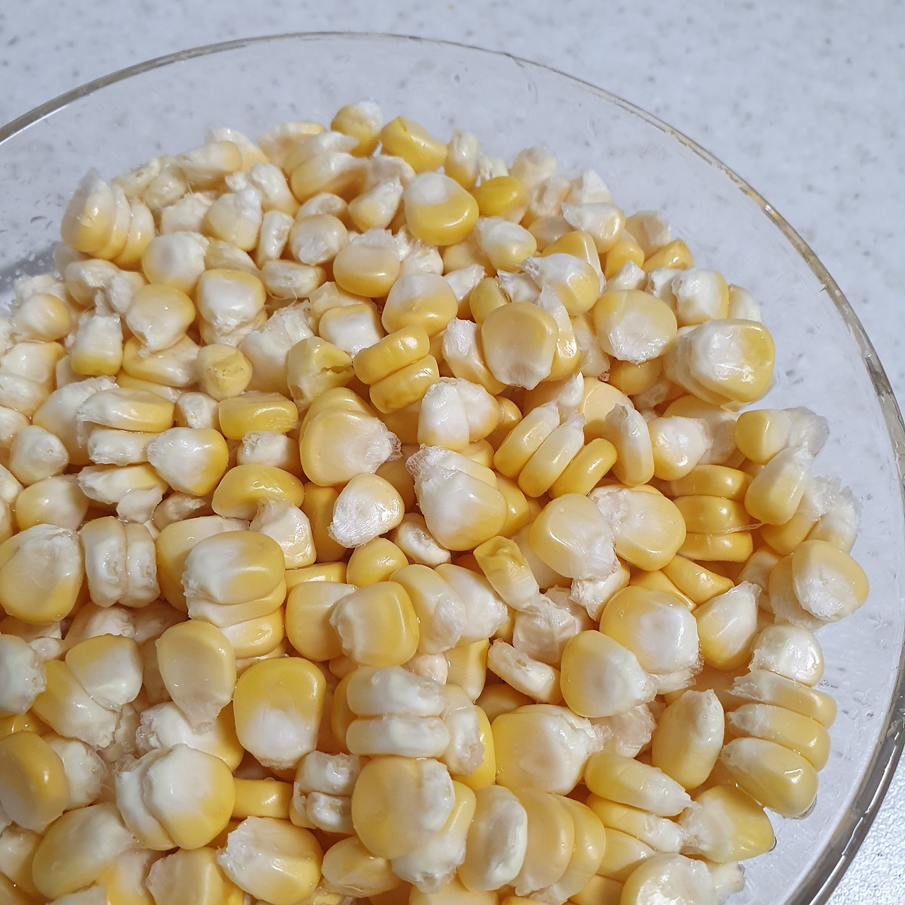 옥수수는 알맹이만 발라내어 준비한다. 큰 옥수수 하나면 충분하다. 어디선가 본 팁으로 옥수수를 세로로 갈라 알맹이를 떼어냈다. 나름 잘 분리되지만, 조금이라도 힘이 과하면 초당옥수수의 과즙이 온 얼굴을 덮칠지도 모른다. 그래도 개나리색과 하얀색의 조화가 귀여운 옥수수를 보면 그 정도는 용서할 수 있을 것이다. 옥수수는 약간의 우유와 함께 갈아 과즙만 따로 준비한다. 이때 우유의 양이 적을수록 옥수수의 향은 강해진다. 최소한의 우유만 사용해서 옥수수 밀크를 만들어준다.