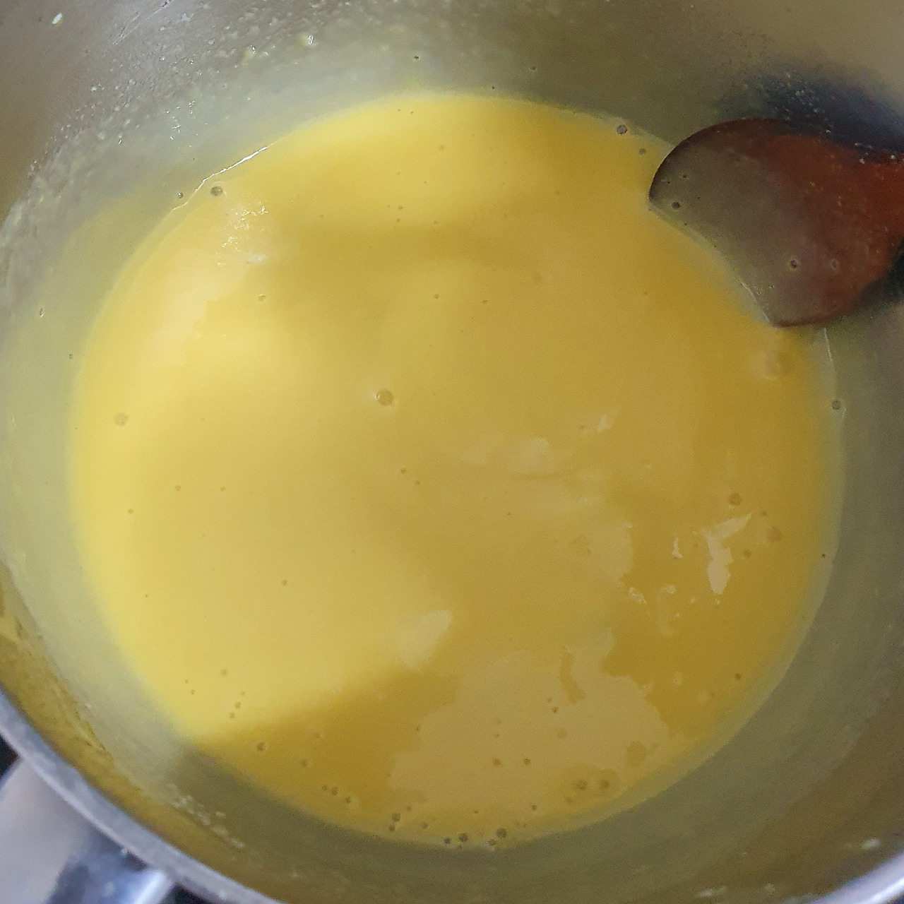 아직 뜨거운 반죽에 계란을 넣어 반죽을 마무리한다. 계란은 정해진 양이 없다. 휘퍼로 저으면서 적당하게 꾸덕한 느낌이 들 때까지 조금씩 추가하며 저어준다. 누군가 베이킹은 정밀한 계량이 생명이라고 했지만, 꼭 그렇지도 않다. 한국요리에만 있을 것 같은 '적당히'를 여기에서도 찾을 수 있다.