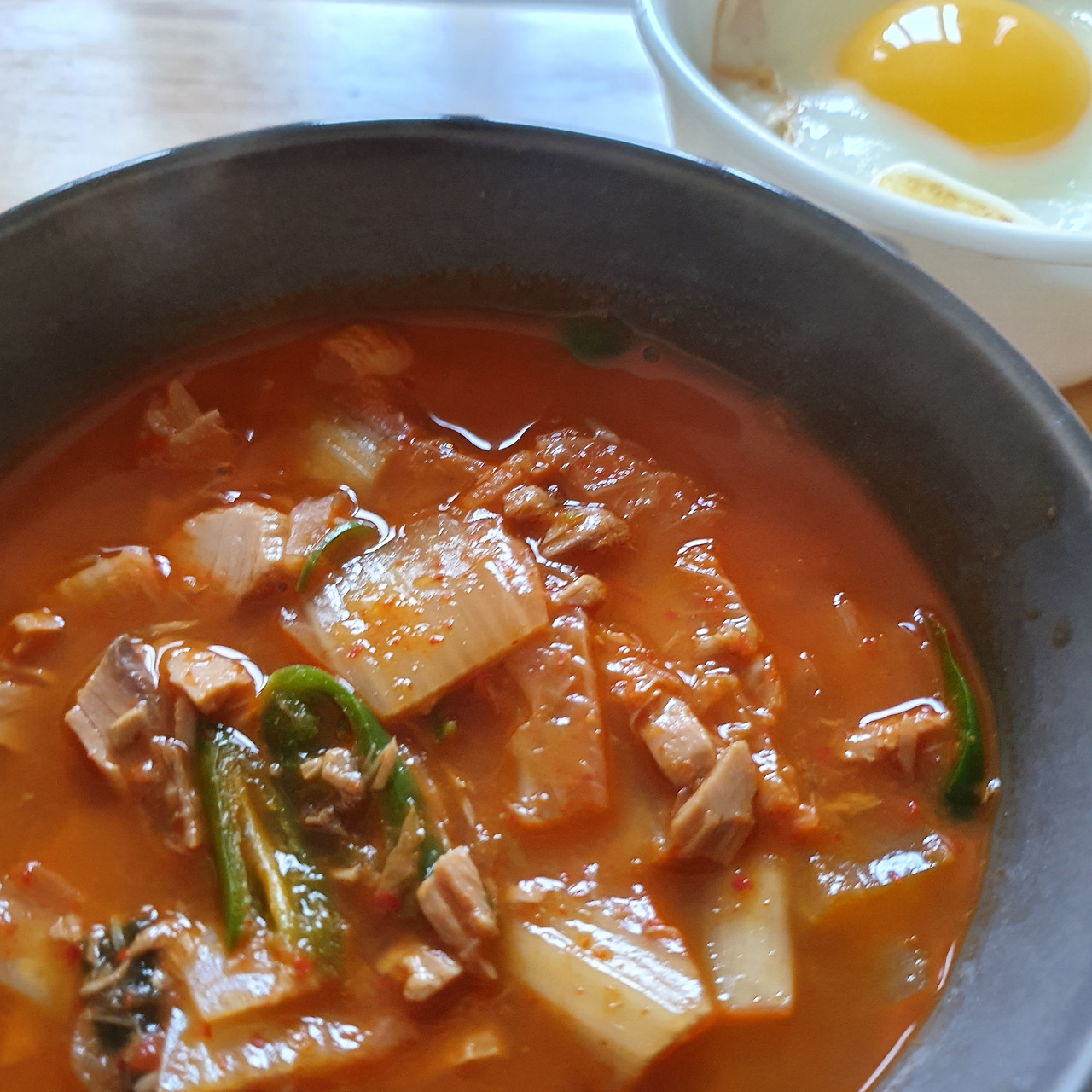 김치찌개는 누구나 본인만의 레시피를 갖고 있을 것이다. 오늘은 초간단 버전으로 모든 것을 한 번에 때려(!) 넣고 끓여내 완성했다. 화려하지 않지만, 흰쌀밥과 반숙 계란 프라이, 조미김과 함께라면 아쉬울 것이 없다. 한입 크게 머금고 흰색 김을 뿜어내며 그 누구의 눈치도 보지 않는다. 그렇게 한 그릇 뜨끈하게 비워낸다. 45분이면 밥 먹고 숨 돌릴 시간도 충분하다. 자, 이제 다시 일하러 가볼 시간!