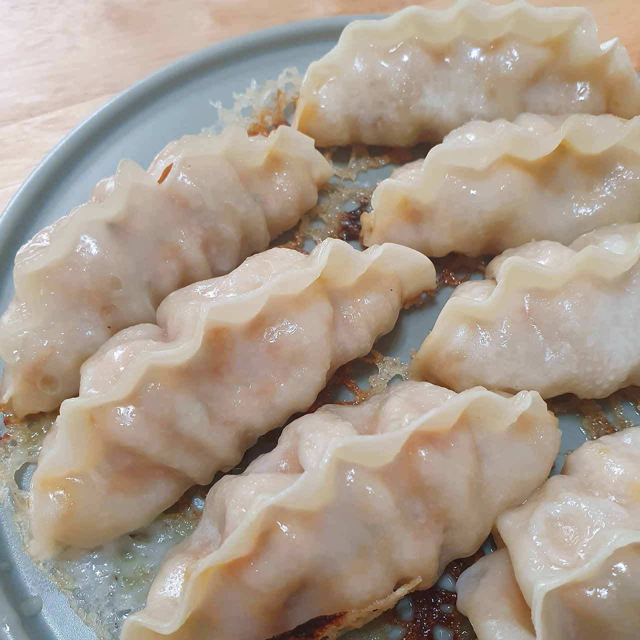 그저 익기만을 기다렸을 뿐인데, 나에게 남은 시간은 40분 남짓이다. 거창하지도 않은 만두 몇 개에 이 긴 시간을 투자했다는 사실에 약간 심술이 난다. 그래도 저항감 없이 바스러지는 얇은 전분 옷은 나의 심술을 잠재우기에 부족함이 없다. 윗면은 쪄낸 듯 부드러운 식감이다. 바삭하면서 부드러운 일본식 교자 특유의 식감을 즐기면서 만두를 하나 둘 먹다 보면 매번 드는 생각.