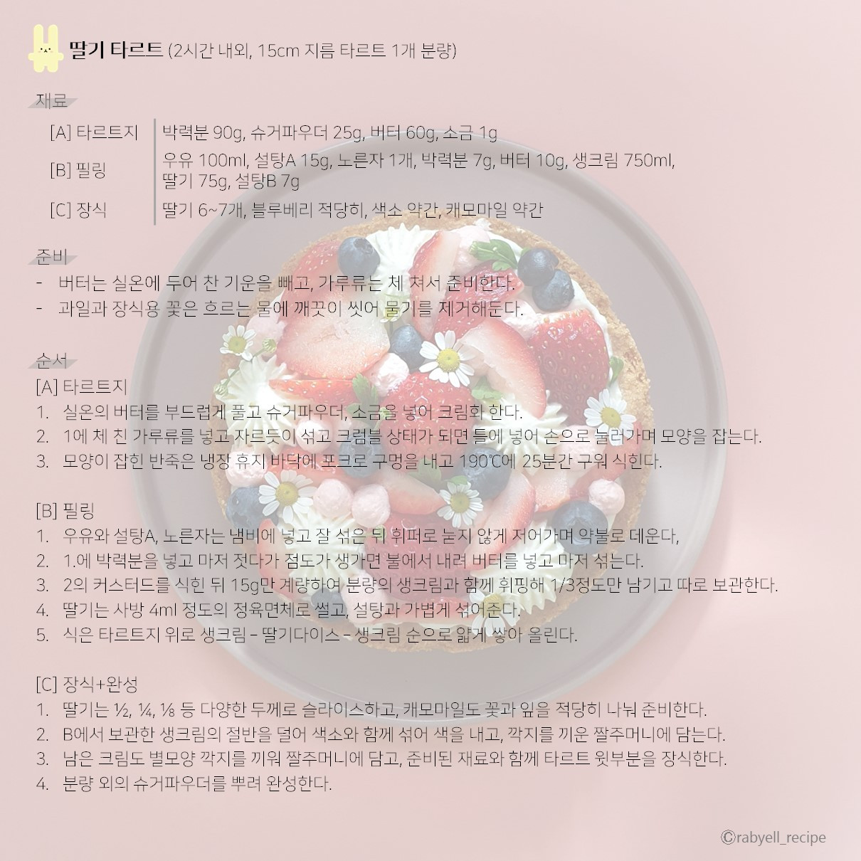 베이커의 두근거리는 마음을 닮은 붉은 그 모습으로 오랜 꿈을 기억하며, 딸기타르트 완성이다.