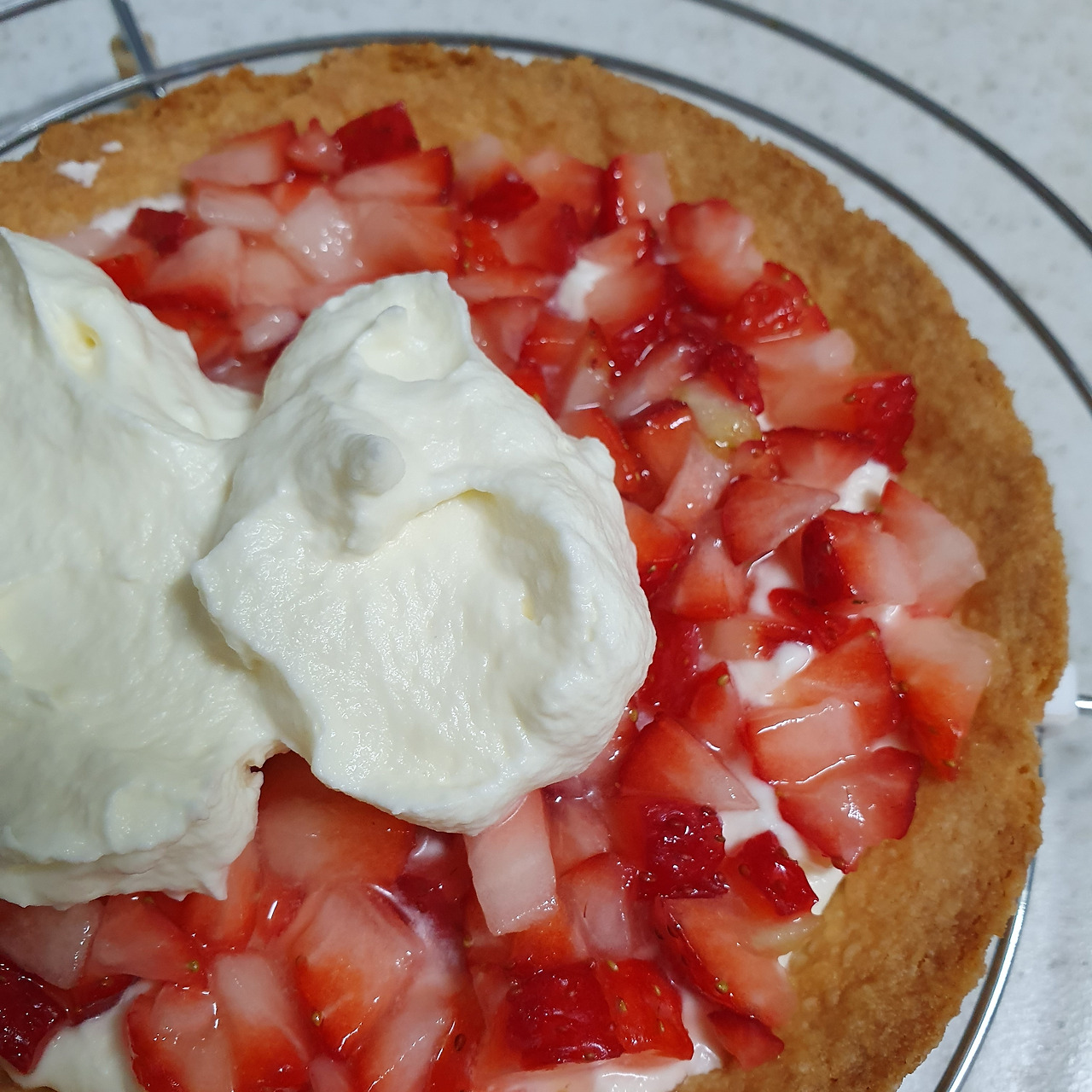 빼꼼한 틈 하나 없이, 준비한 재료를 잔뜩 올리고 나면 이제 자랑할 차례이다. 온 동네방네 내가 만든 완벽한 딸기타르트를 자랑하자.