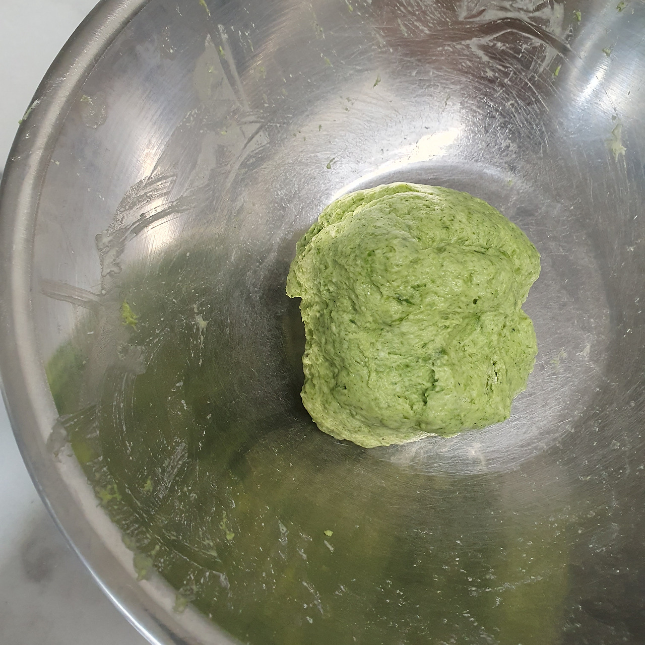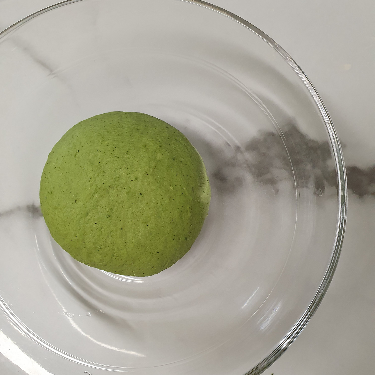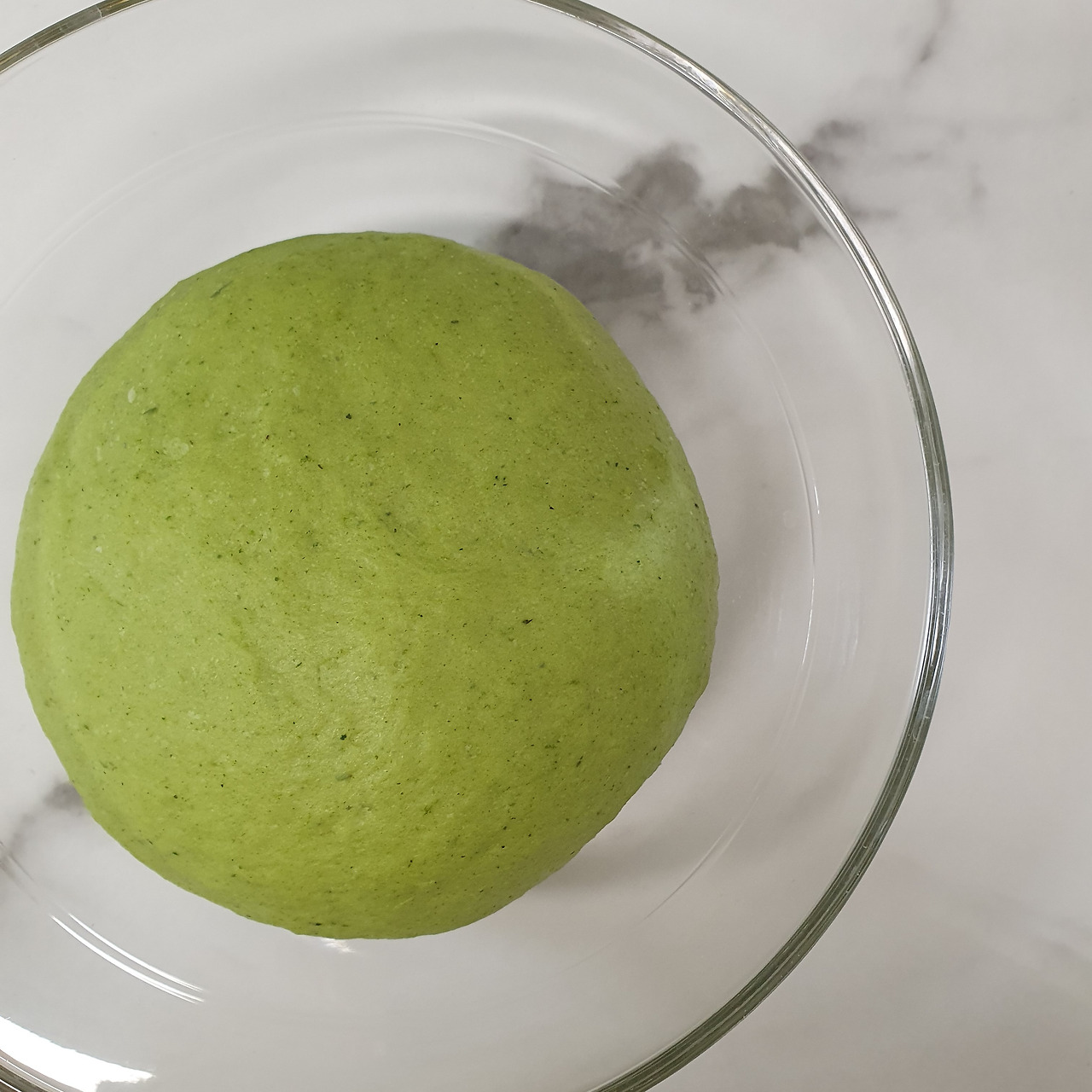 맨질맨질해진 초록의 반죽은 따뜻한 곳에서 충분히 발효시킨다. 두둥실, 부피가 커지기만을 기다리자.