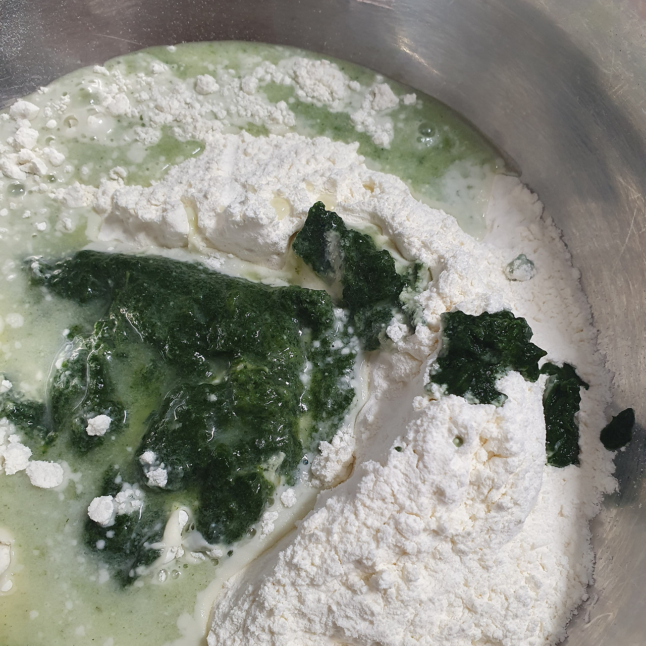 쑥은 가볍게 데쳐 잘 갈아준다. 양이 많지 않아도 색과 향을 내기엔 부족함이 없다. 다른 재료와 함께 반죽을 만들다 오일을 마지막으로 넣는다. 그럼 숨겨져 있던 오일과 쑥의 향이 시너지를 내며 주방에 퍼진다.