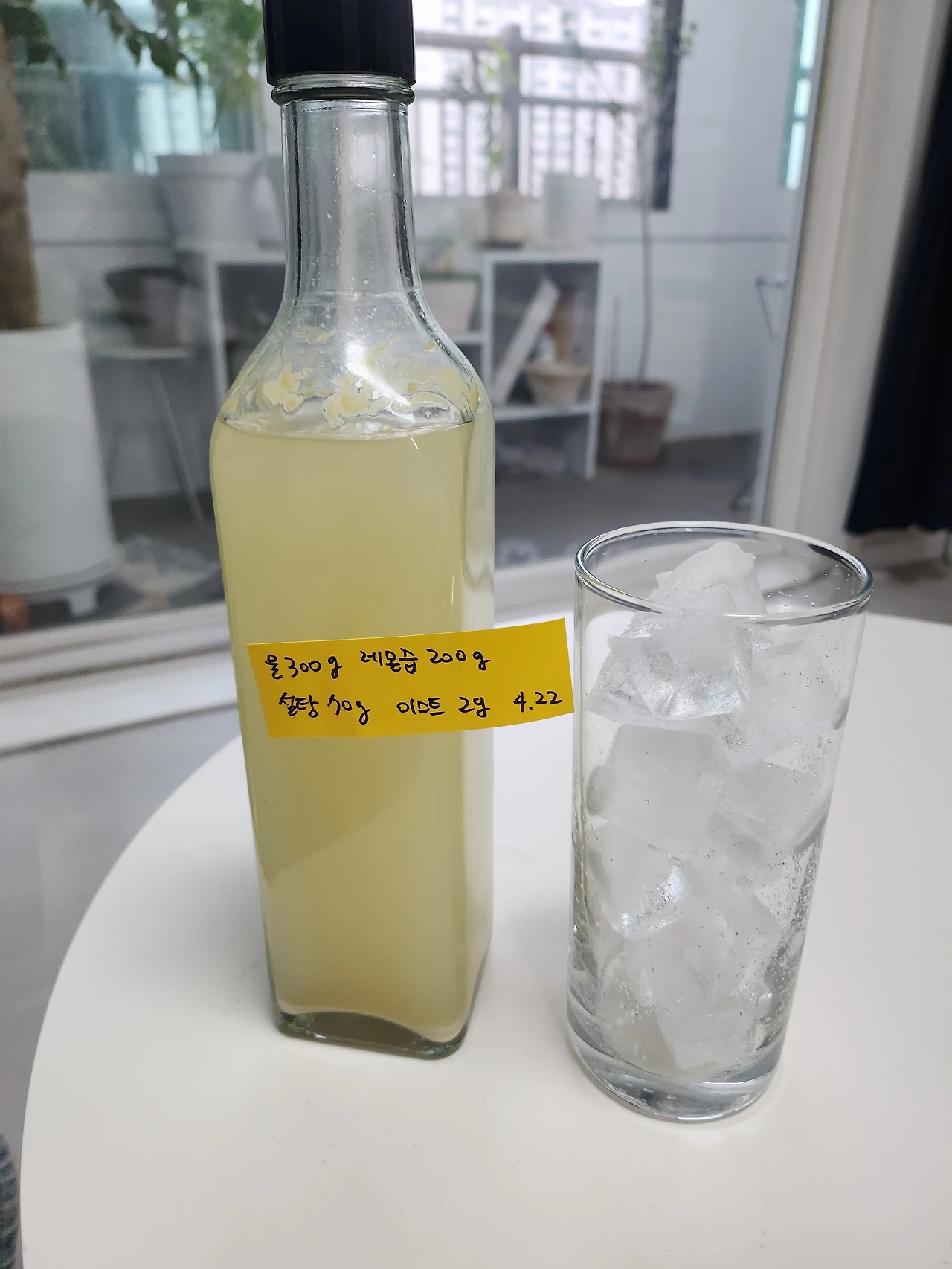 얼음 위에 부어 차갑게 마시니 단맛은 온데간데없고, 레몬의 신맛과 알코올의 씁쓸한 맛만 납니다. 탄산도 이미 빠지고 없는 모양이에요. 레몬주 반에 탄산수 반을 섞었더니 레모네이드 느낌으로 가볍게 마시기 좋습니다.