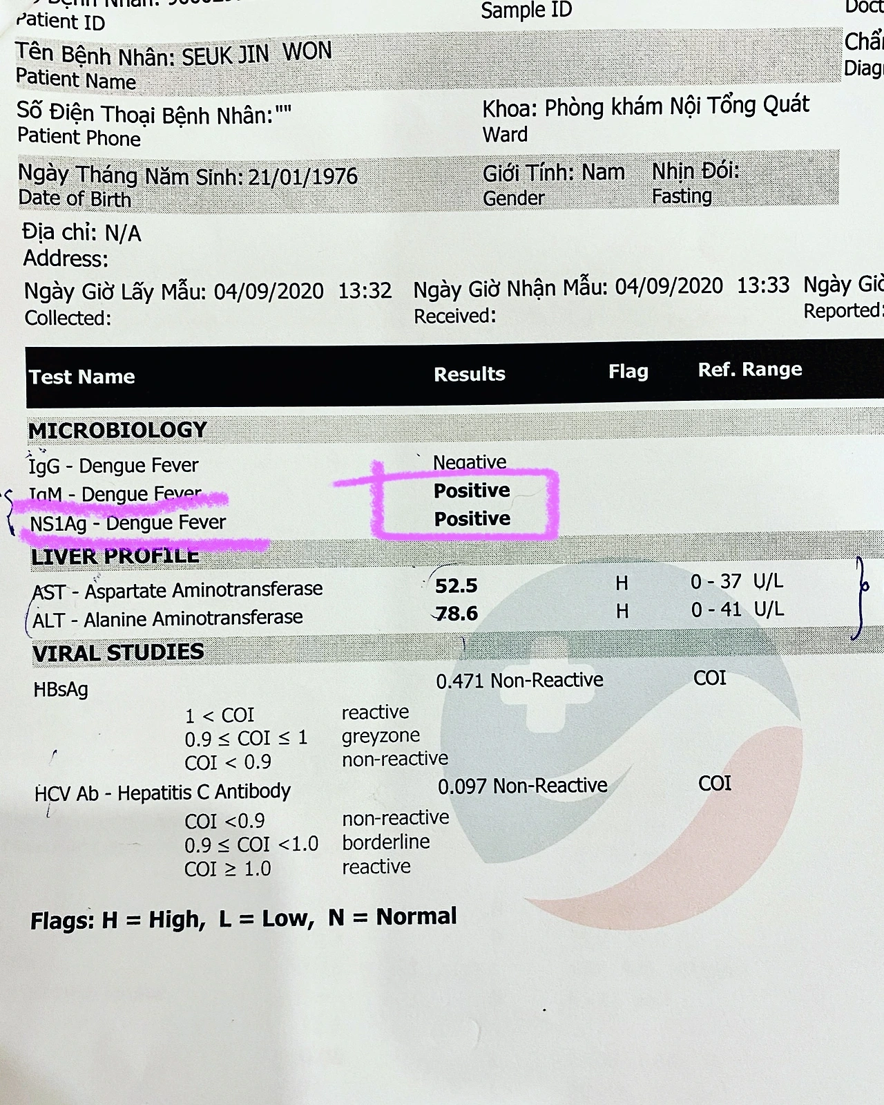 남편도 나도 그저 감기이겠거니 생각했다. 어제 호찌민에 도착했을 때에는 다시 멀쩡해지는가 싶게 컨디션이 좋아 보였다. 오늘 아침 다시 시름시름하는 걸 보고 억지로 병원에 끌고 가서 피검사를 해보니 Dengue Fever 항목에 Positive가 떴다. 뎅기열에 걸려 아팠던 것이었다. 말로만 듣던 그 무서운 모기 놈에게 나의 남편이 뜯기다니. 다행히 증상이 입원할 정도는 아니라고 해서 집으로 돌아왔다. 입원할 증상이란 구토, 정신착란, 기절, 출혈 멈추지 않음 등인데 남편은 그저 이불을 뒤집어쓰고 잘 뿐 위험한 증상은 보이지 않고 있다. 의사가 물과 과일주스를 엄청 먹이라고 신신당부를 했다. 다 낫는데 족히 10일은 걸린다고 한다. 오늘이 닷새 째니 아직 반이 남았다. 이 놈의 모기! 손바닥으로 때려잡으리.