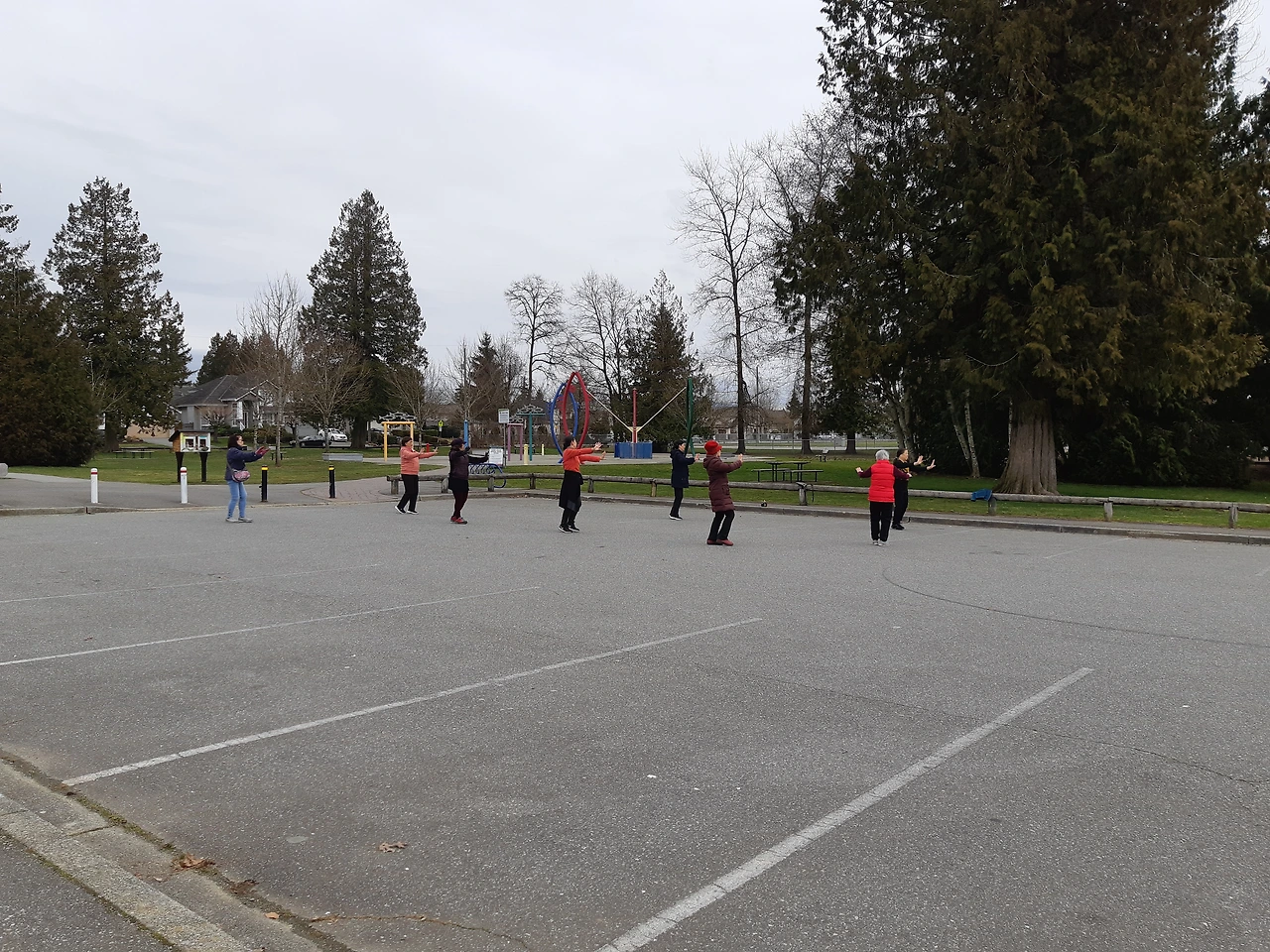두 번째는 1년에 한 번 동네 페스티벌을 위해 급조해서 만든 한인 음식 봉사회였다. 인기가 많은 불고기와 돼지 제육볶음 등을 만들어 팔아 수익을 학교에 도네이션 하면 뭔가 지역 커뮤니티에 도움이 되었다는 마음에 뿌듯했다.그때가 그래도 한국 엄마들과 동네를 위해 열정적으로 봉사하면서 보냈던 즐거운 시간이었다. 정말 솜씨는 어디 가도 빛을 발한다. 아는 지인을 통해 들어보니 이 동네로 들어오는 중국인들의 수가 더 늘어서 요즘에는 오픈 하우스 때 거의 모든 사람이 중국인이라고 한다. 아이가 오전은 학교 오후는 집에서 줌 수업을 해서 와서 아예 거기서 산책을 하며 기다리는데 진짜 거의 모두가 중국인이다. 그리고 어쩜 그렇게 잘 단합을 하고 사는지 행복해 보인다. 남자 노인들은 손자들을 데리고 놀고 여자 노인들은 오가는 사람의 눈에 아랑곳하지 않고 혼자라도 '차이'라는 체조를 하거나 단체로 춤도 저렇게 춘다. 캐나다에 사는데 여기가 어디인가 가끔 둘러보게 된다. 으슬으슬 축축한 공기로 목덜미가 서늘한김에 괜스레 전화 다이얼을 돌렸다. "저기 지금 뭐해요?" 누군가를 불러낼 참이었다. 그 동네 가까이 사는 아는 분이 전화를 받지 않았다. 텅 빈 주차장에서 보니엠의 ' Rivers of Barbylon' 또 알지 못할 중국노래 메들리를 들으며 시린 무릎에 담요를 두르고 아이가 올 때까지 차 안에서 책을 읽었다.아직은 춥다.