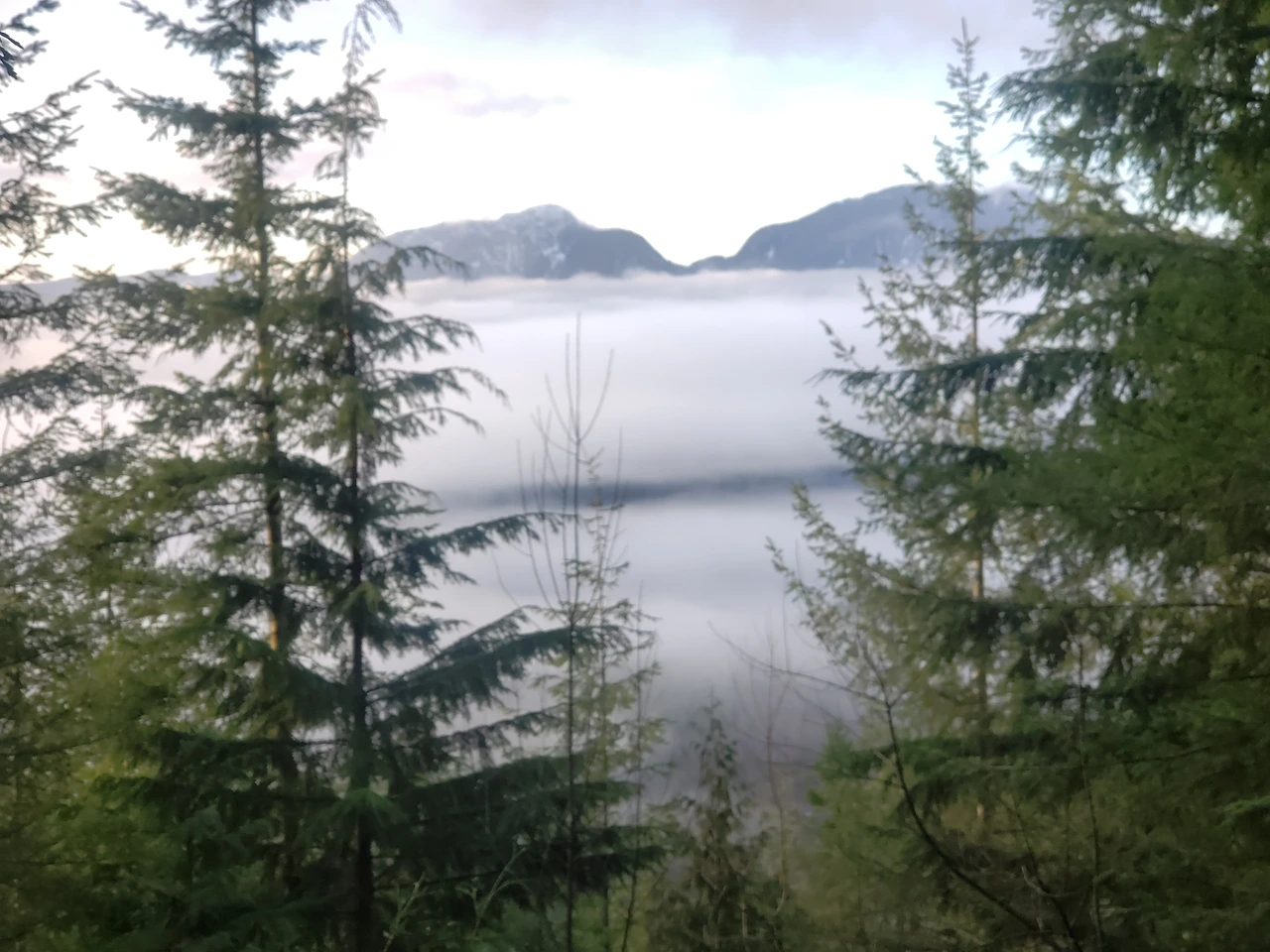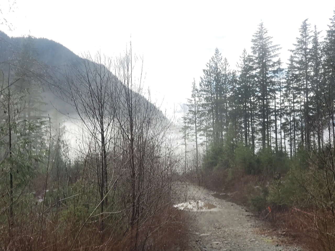일주일 후 다시 찾은 미션의 겨울산은 조금은 두터운 겨울눈 옷을 벗은 듯 가벼워 보였습니다. 눈이 녹아 질척한 길 때문에 차에 진흙이 튀어 엉망이 되었습니다. 하지만 시야의 위쪽으로는 안개가 흰 날개 옷을 입고 높은 곳으로 날아오르는 천사처럼 보였습니다 그녀들의 찬란한 춤사위 틈에 언 듯 보이는 하늘빛을 담으려고 눈을 크게 떠 봅니다. 멀리 보이는 하늘은 태평양 남쪽 나라 어느 섬의 바다처럼 비취 빛이었습니다. 어느덧 환해진 하늘, 구름을 비집고 다가온 햇살이 반가워 솜사탕을 먹은 것처럼 기뻤습니다.