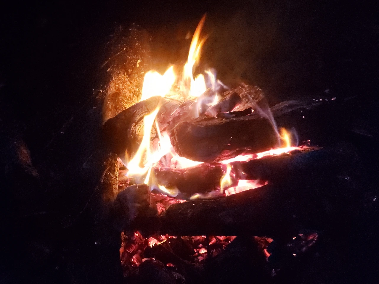 근처에 떨어져 있는 나뭇가지를 똑똑 분질러서 불에 포개 얹습니다. 원래는 불 쏘시게 할 것들이 먼저 들어간 후 그 위에 장작을 얹어야 하는데 남편은 반대로 불을 피웁니다. 어릴 적 부뚜막에 불을 많이 때본 경력을 무시하는 그 고집통이 천년만년 갈까 봐 겁이 납니다.