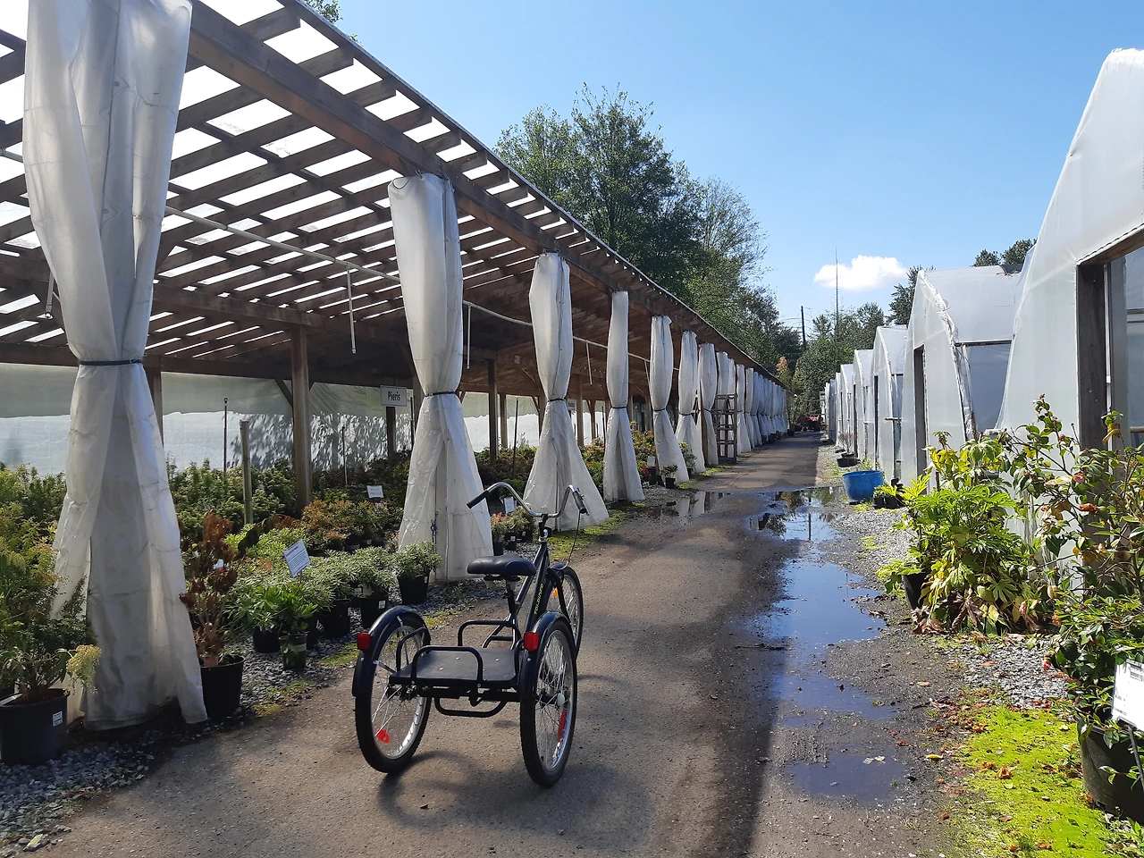 해바라기는 모종은 다음 주에나 나온다고 한다. 넝쿨 장미 한그루를 살까 하는 마음이 있어 둘러보다 보니 눈에 확 들어오는 것이 있었다. 세발자전거였다. 화원에서 무거운 나무 등을 실어 나르라고 자전거를 준비해 놓은 것이었다. 세발이라서 안정감이 있어서 무섭지 않았다. 장미 구경은 하는 둥 마는 둥 하면서 자전거를 타면서 시간을 보냈다. 넓은 화원을 마구 쏘다니다 보니 아이의 수업이 끝나는 시간이 되어 사려던 제대로 장미는 보지도 못하고 돌아왔다. 하지만 생각지도 못하던 자전거 덕에 재미나고 신나는 하루였다. 꽃바구니가 주렁주렁 달린 화원은 언제라도 방문하고픈 장소다.