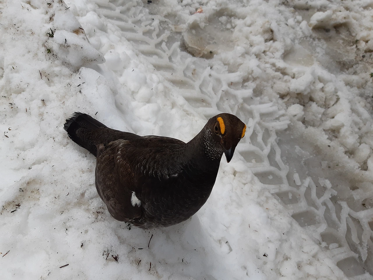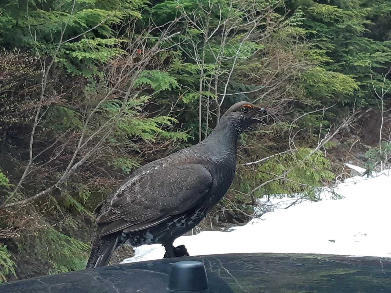 산에 다니다 이상한 새를 만난 에피소드입니다. 5월 말인데도 산 위에 올라가니 눈이 덮여 있었습니다. 멀리서 새 한 마리가 뒤뚱 거리면서 다가오길래 어떻게 하려나 싶어 기다렸습니다. 그런데 차로 가까이 다가와서는 계속 울면서 가지를 않길래 내려서 왜 그러는지 알아보고 싶었습니다. 저와 남편의 주위를 왔다 갔다 하면서 떠날 생각을 하지 않았습니다. 먹이를 필요로 하는 것 같지도 않았습니다. 사진을 찍으려 가까이 갔더니 펄쩍 날아오르면서 제 무릎을 쪼길래 일단은 한걸음 물러섰습니다
