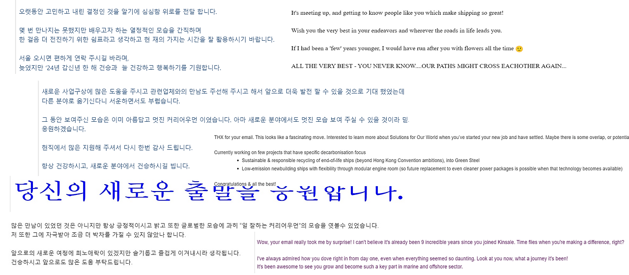 꽤 오랜 시간 고민해 짧은 메일을 작성했다. 그리고 퇴사하기 일주일 전 기억에 남는 거래처분들을 모두 숨은 참조로 해서 보내기 버튼을 눌렀다.