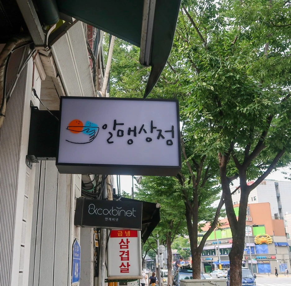 가게명은 "껍데기는 가고 알맹이만 오라"라는 뜻이다.