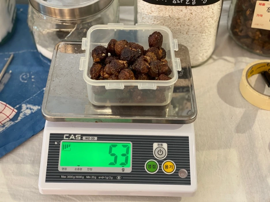 마침 주방 세재가 떨어져 가고 있어서 세재 대신 사용할 수 있는 친환경 세재인 소프넛(Soap+nut)을 구매했다! 집에서 락앤락 통을 챙겨서 갔다 :)