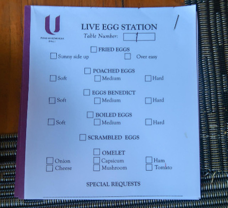 사진에서도 보이듯이 U Paasha 호텔에는 원하는 대로 계란 요리를 주문할 수 있는 Egg Station 이 있다.