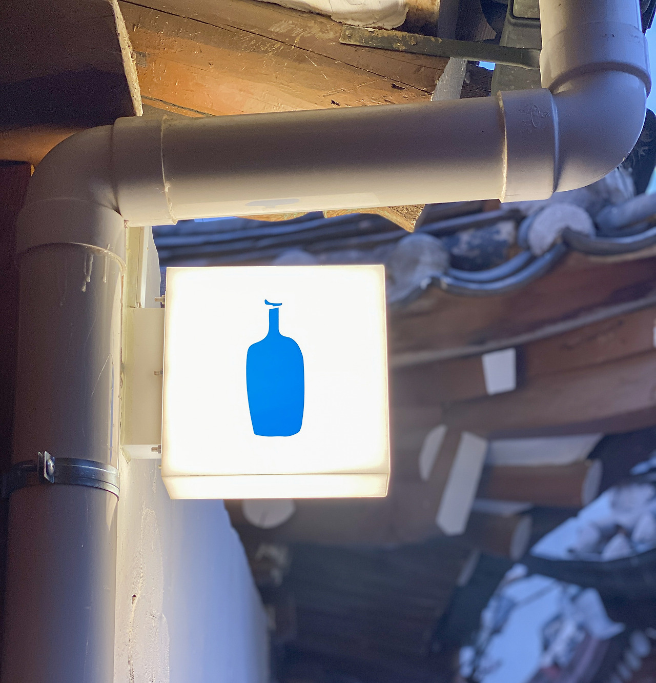공간의 본질은 '이 공간에 들어온 사람이 무엇을 느꼈으면 좋겠는가?'에 있다고 생각한다. 블루보틀 삼청한옥점은 이색적이지만 편안한 공간에서 블루보틀을 즐길 수 있다는 느낌이 들었다. 한옥 자체가 우리 고유의 기술과 양식으로 지은 건축물로 자연과의 조화를 최고의 이상으로 삼았기 때문인지 나까지 차분해졌다. 곡선의 아름다움이 살아있고 안과 밖의 구분이 없는 집이라 그런지 마음도 편안했다.