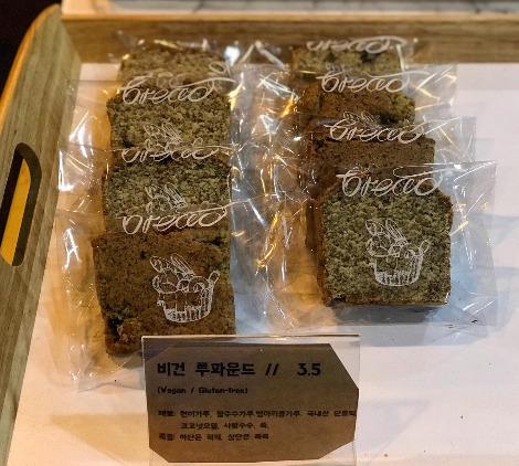 메뉴: 인절미케이크 (7,300) & 브라우니 (6,800) 비건 메뉴 / 스콘 3,600 부터