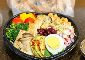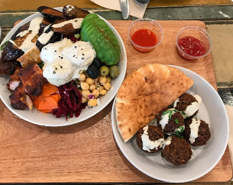 비건 버거, 팔라펠 샐러드, 아보카도 샐러드 등 완전 비건 메뉴도 있고 닭, 새우, 연어 등 고기류도 있어서 기호에 맞게 선택할 수 있다. Add on으로 아보카도, 후무스, 피타브레드, 가지 튀김 등 다양한 메뉴를 추가할 수 있다.