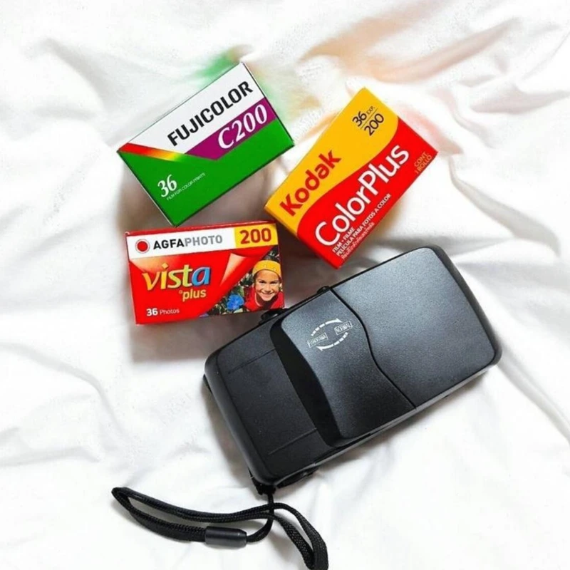 작고 귀여운 검은색 다회용 토이 필름 카메라