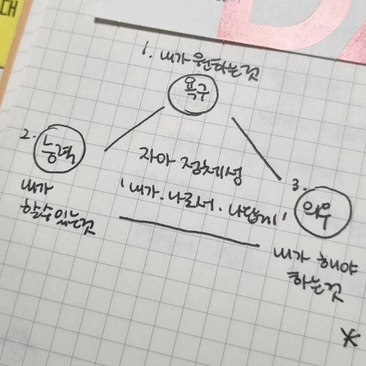 1. 내가 원하는 것 (욕구) 2. 내가 할 수 있는 것 (능력) 3. 내가 해야 하는 것 (의무)