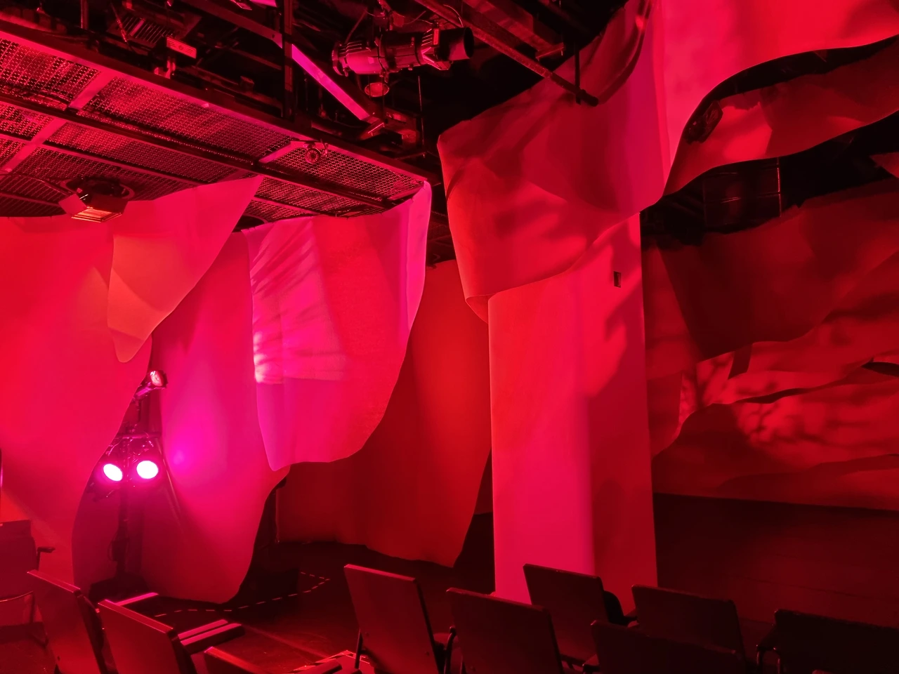 극장에 들어가자마자 빨간 조명과 특이한 무대 디자인이 눈에 띄었다. 정말 장기 속으로 빨려 들어온 느낌? 제작발표회에서 연출님은 몸으로 느끼는 감각을 관객들에게 효과적으로 전달하기 위해 극장 문을 여는 순간부터 10대의 장기 또는 몸속으로 들어가는 듯한 느낌을 연출하는 디자인을 논의 중이라고 하셨는데 극장에 들어가는 순간 직관적으로 작품의 분위기를 느낄 수 있었다.