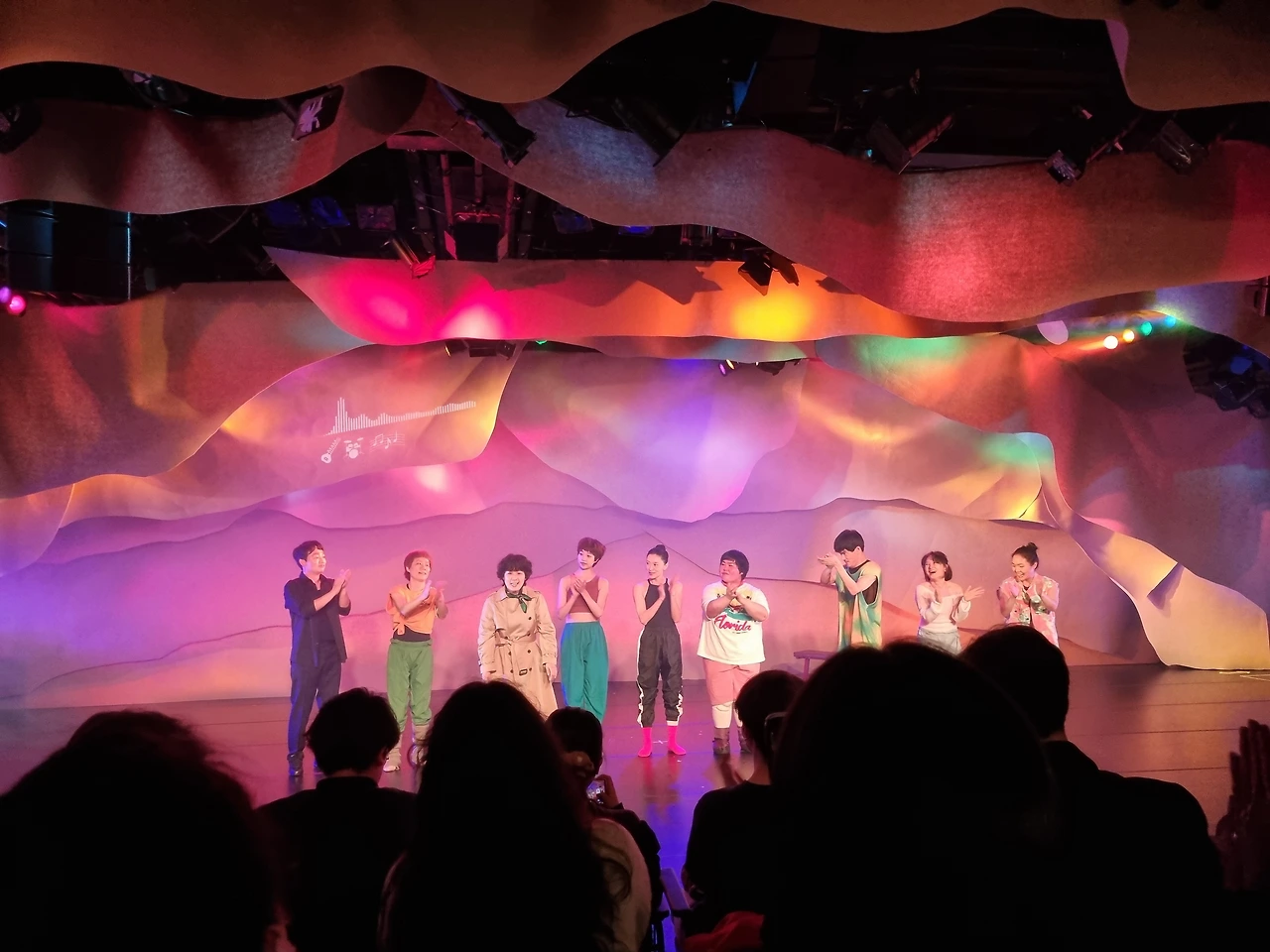 주주와 아미나뿐 아니라 코니, 마에브, 애슐리, 소피아, 루크 각 인물에 대한 이야기 그리고 그들 사이의 관계를 하나하나 다 조명해 무대 위에서 각기 다른 빛으로 발한 점이 인상 깊었다. 특정 인물을 보조하거나 어떤 사건을 위해 존재하는 것이 아니라, 모든 캐릭터는 10대 인물 그 자체로 존재하며 그들의 목소리를 일일이 들어볼 수 있는 작품이라서 좋았다. 10대 여성이 나의 욕망과 나의 몸의 욕망에 대해 거리낌 없이 외치는 작품은 아직 흔하지 않기 때문이다. 특히 애슐리가 긴 독백으로 나의 욕망에 대해 소리치던 장면이 잊히지 않는다. 애슐리가 핸드마이크를 들고 랩 하듯이 말을 쏟아낼 때 내 마음이 대신 뻥 뚫리는 느낌이 들었다!!!!!!! 매력적인 캐릭터였다.