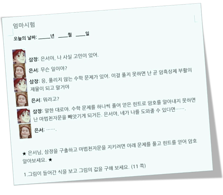 그냥 풀라고 주면 단순히 틀린 문제 다시 풀기가 될 것 같아 양념을 약간 친 뒤 아이에게 보여주었다.