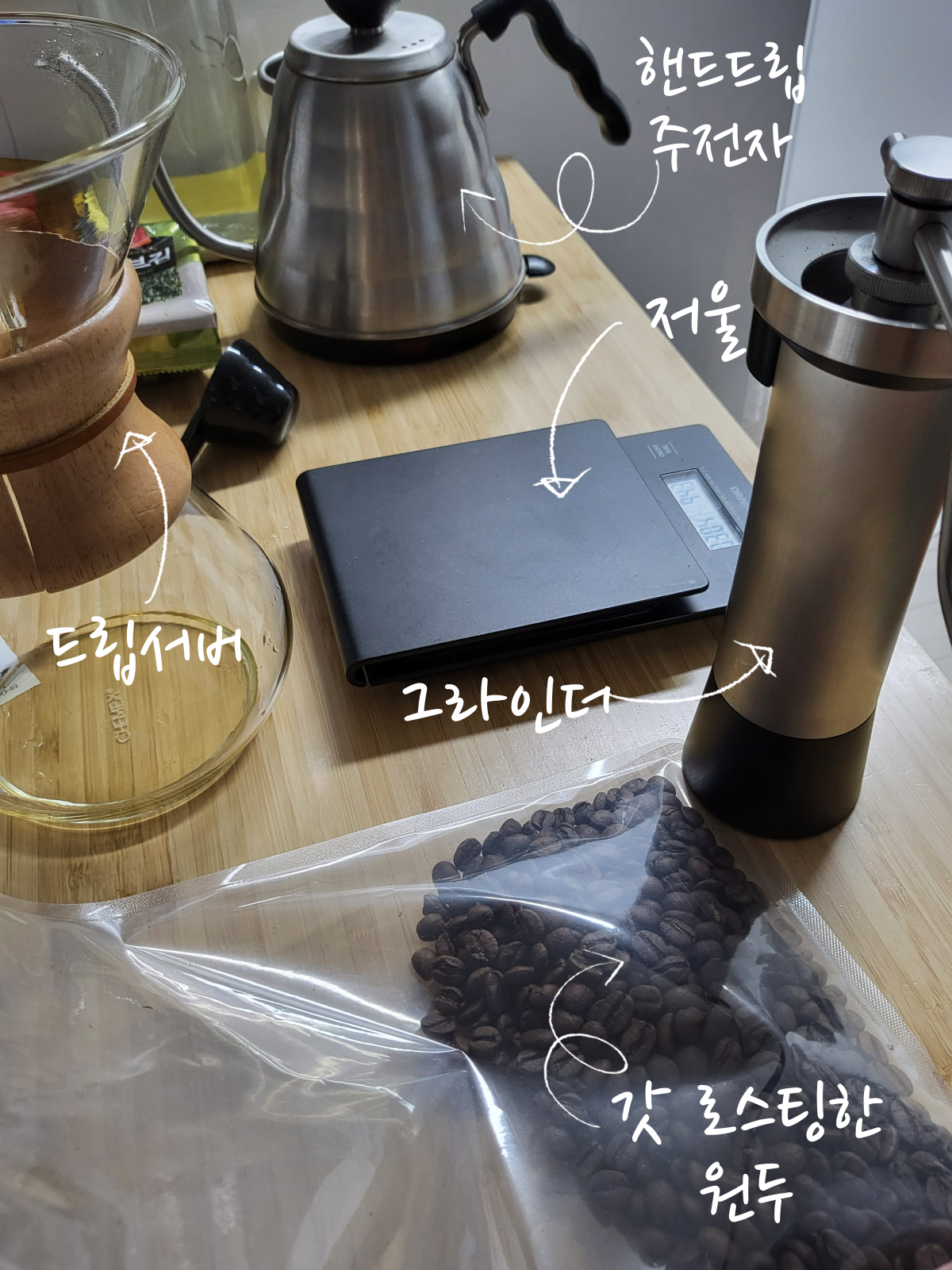 다음날 새벽. 지칠 법도 한데 남편은 집을 비운 사이 도착한 원두를 맛보고자 눈을 번쩍 떴다. 부산한 아이들이 곤히 자는 이 시간을 남편은 언제부터인지 즐기고 있다. 커피를 내리면서 책도 읽고 멍도 때리며 자신만의 시간을 보낸다.