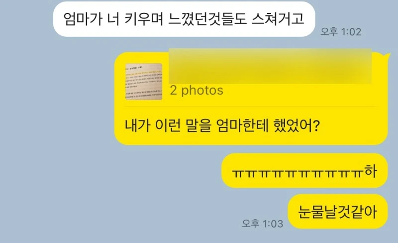 하루가 멀다 하고 이런 대화를 했다. 그게 누적되니 정말 외로웠다. 심장에서부터 끓어오르는 불꽃같은 감정을 표출하고 타인과 공유하고 싶었지만 그럴 수 없었다.