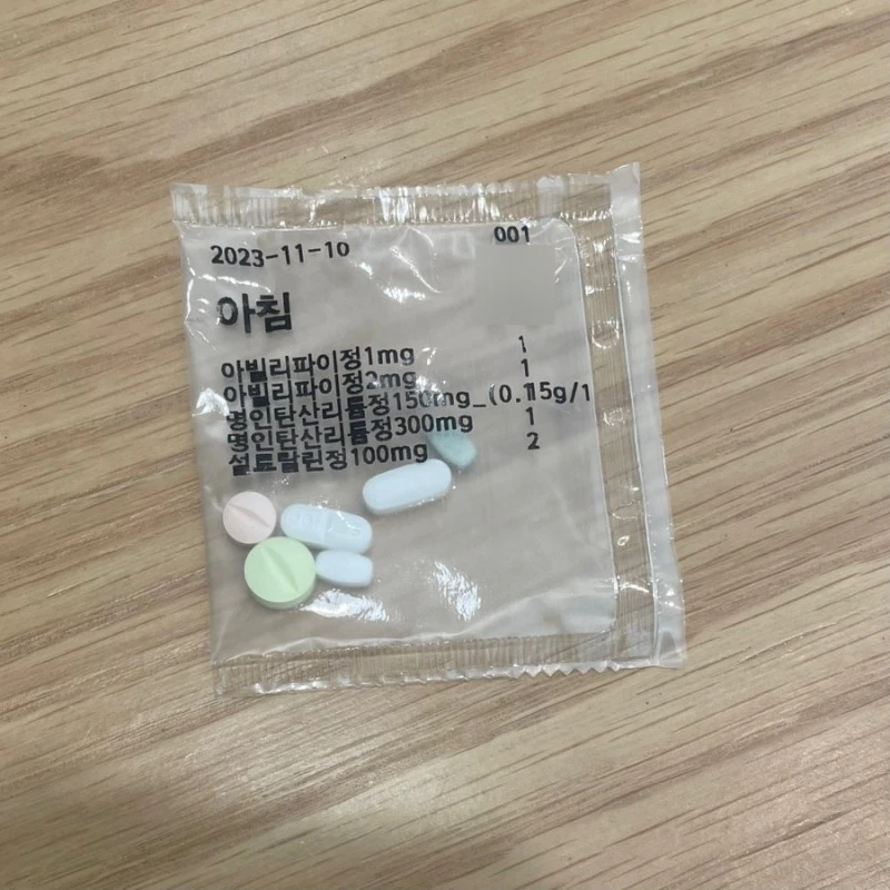 가장 먼저 복용한 약물은 산도스설트랄린이다. 2세대 항우울제인 SSRI(선택적 세로토닌 재흡수 억제제)에 속하는 설트랄린(Sertraline)을 유효성분으로 하는 카피(copy) 약이다.
