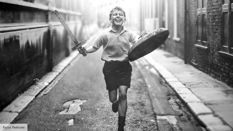 그러니 영화를 반짝이게 하는 것은 1969년의 실제 벨파스트가 아니라, 버디의 기억이다. 피 터지는 종교분쟁은 그럴 수 없지만, 영화를 보듯 빛나는 시선으로 세상을 봤던 어린 아이로서의 기억은 눈부실 수 있다. 폭도들이 동네에 들이닥칠 때 카메라는 버디가 절체절명의 위기를 목전에 둔 영웅인 것처럼 주변을 둥글게 돌며 겁에 질린 얼굴을 훑고, 버디의 엄마는 버디가 들고 있던 쓰레기통 뚜껑을 방패삼아 난리통을 뚫고 멋지게 버디를 구해낸다. 가톨릭 급진주의자들이 협박해올 때의 아빠는 무섭게 번쩍이는 눈으로 그들을 정면으로 바라보며, 언제나 단호하게 그들을 물리친다. 영화가 그리는 삶은 결코 사실적이지 않다. 그것보단 영화를 좋아하는 아이가 자기가 본 것을 머릿속에서 영화에 빗대어 처리한 모양에 가깝다.