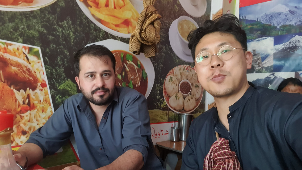 5. 먼 길을 돌아 '길기트'라는 곳에 도착했다. 7인승 SUV 맨 뒷자리, 옆자리에 같이 짐짝처럼 찌그러져 온 사람은 오랜만에 고향에 방문하는 '길기트' 주민이었다. 고통을 나눈 동지로서 오는 길에 ‘짜이’(밀크티)도 사주고, 이곳에 도착해 핸드폰 개통도 도와주고, 현지식 만두도 사줬다. 내가 돈을 낸다고 하면 'you are my guest' 이러면서 돈 한 푼 못쓰게 한다. 나의 진짜 목적지인 '훈자'가는 버스 정류장까지 안내하고, 버스가 출발하기 전까지 곁을 지켜준다. 외국에서 먼저 다가오는 친절한 사람은 조금 경계하는 것이 안전한데, 문제는 여기에서 만난 거의 모든 사람들이 이렇게 친절했다.
