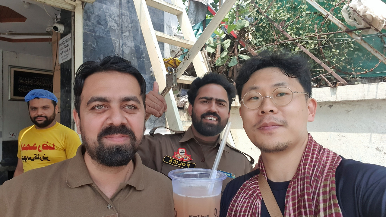 2. 외국인은 많이 없어 보인다. 그래서인지 어딜 가든 관심의 대상이다. 함께 사진을 찍자고 하거나, 카메라가 없는 사람은 내 폰으로 자신을 찍어달라고 한다? 왜? 어떤 사람은 자신의 SNS에 올릴 동영상을 찍기도 한다. 한 번은 경찰 2명이 나에게 '니하오'하며 반갑게 인사해 주었다. 그냥 지나칠 수도 있었지만 나는 '네히, 코리아! (아니, 한국!)'라 말하니 갑자기 길 건너편 음료수 가게에 가자며 과일음료를 사줬다. 그리고는 자신의 폰으로 짧은 인터뷰를 부탁했다. 인터뷰 내용은 대략 '파키스탄 진다바드!(영원하라!)'