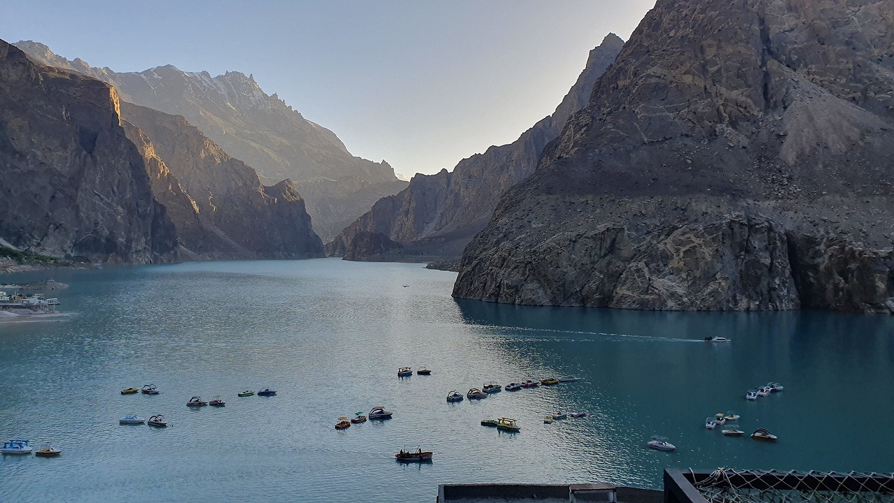 7. '파수 빙하'로 목적지를 수정한다. 내가 빌린 바이크로 어둠 속 운행은 무리다. 잘하면 해가지기 전 파수 빙하를 보고 돌아올 수 있을 것 같아 길을 재촉한다. 외길이라지만 내비게이션 없이 가는 길은 거리를 가늠할 수 없어 불안하다. 특히 끝이 보이지 않고 내부 조명이 없는 긴 터널을 지날 때 또다시 포기를 생각했다. 5분? 10분쯤 그렇게 달렸을까? 긴 터널을 통과하자 놀랍게도 파란 ‘아타바드 호수’가 나온다. 그렇다면 중간쯤 왔다는 얘기, 길을 돌릴 수 없다. 다시 한번 박차를 가해 달린 결과... 끝이 보이지 않고 내부 조명이 없는 두 번째 긴 터널을 만날 수 있었다. 목숨이 하나뿐인지라 터널 안에서 방향을 돌릴 수 없어 끝까지 달렸다. 그렇게 두 번째 터널 통과 후 한참을 더 달란다. 또다시 포기를 가늠하며 달리는데 어느 순간 도로에 한기가 서린다. 빙하 때문인가???? 진짜였다! 드디어 'WELCOME TO PASSU' 사인이 눈에 들어왔다. 해!냈!다!