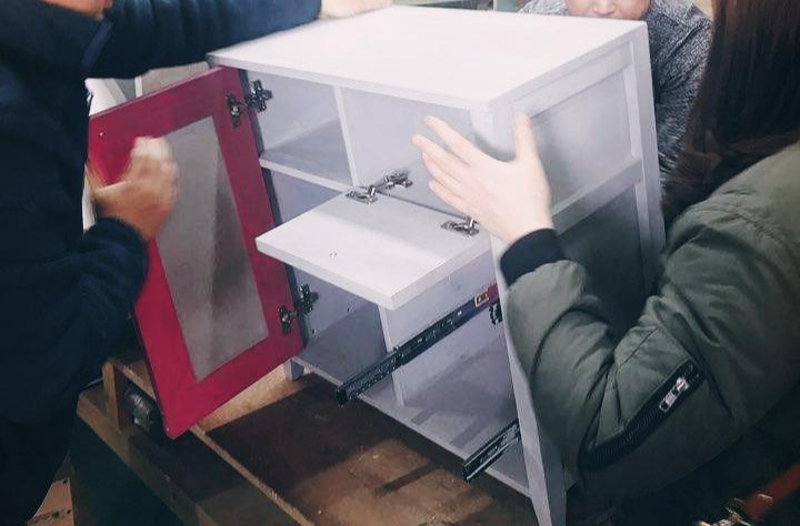 조원분들이 열심히 도와주고 있는 로다의 서랍장