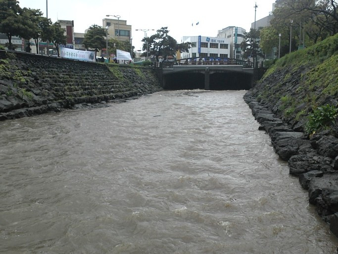 나는 우산을 들고 투벅투벅 거리로 나왔다. 우리집은 작은 하천 옆에 있었는데 벌써 물이 불어 제방 높이의 반 이상을 잡아먹은 뒤였다.