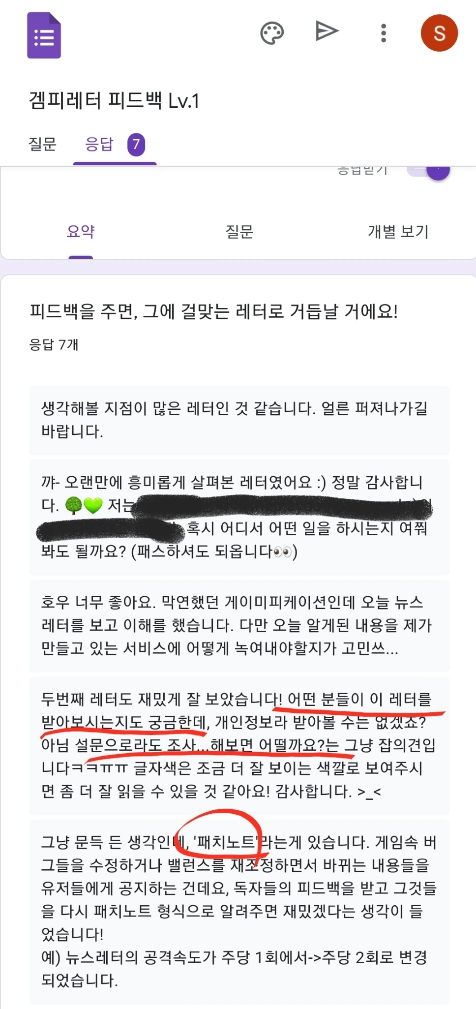 10. 저도 그럴 거고요. 겜피레터를 즐긴 다음, 피드백까지 남겨주신 분들의 이야기를 유심히 읽고 듣는 중입니다. 이분들에게 필요한 건 뭘까, 나와의 교집합은 어디에 있을까 같은 걸 고민하면서요.