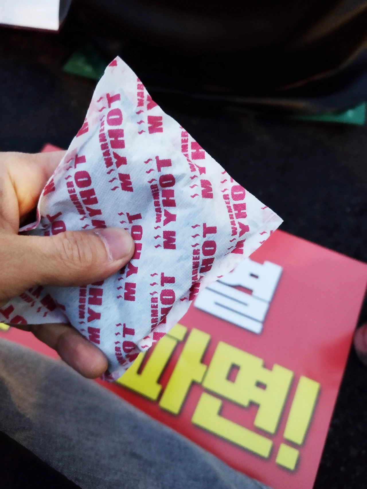 어제 안국역 집회에 나갔다. 마침 외부 교육을 경복궁에서 듣고 있기도 했고, 무엇보다 이승환이 집회에 온다는 소식을 접했기 때문이다. 부랴부랴 와이프에게 연락해 만날 시간을 잡고, 현장에 조금 일찍 도착해 자리를 잡았다. 바람이 꽤나 많이 불었음에도 일찍 도착한 사람들은 추운 기색 없이 웃으며 자리를 지켰고, 난 그곳에서 너무나 오랜만에 군대 후임을 우연히 만나 더 기분 좋은 자리가 되었다. 내 옷차림이 추워 보인다며 일부러 내가 앉은 곳까지 찾아와 핫팩과 과자를 챙겨준 그 친구의 마음이 너무 고마워서, 집회 시작 전부터 그냥 마음이 흐뭇하고 즐거웠다.