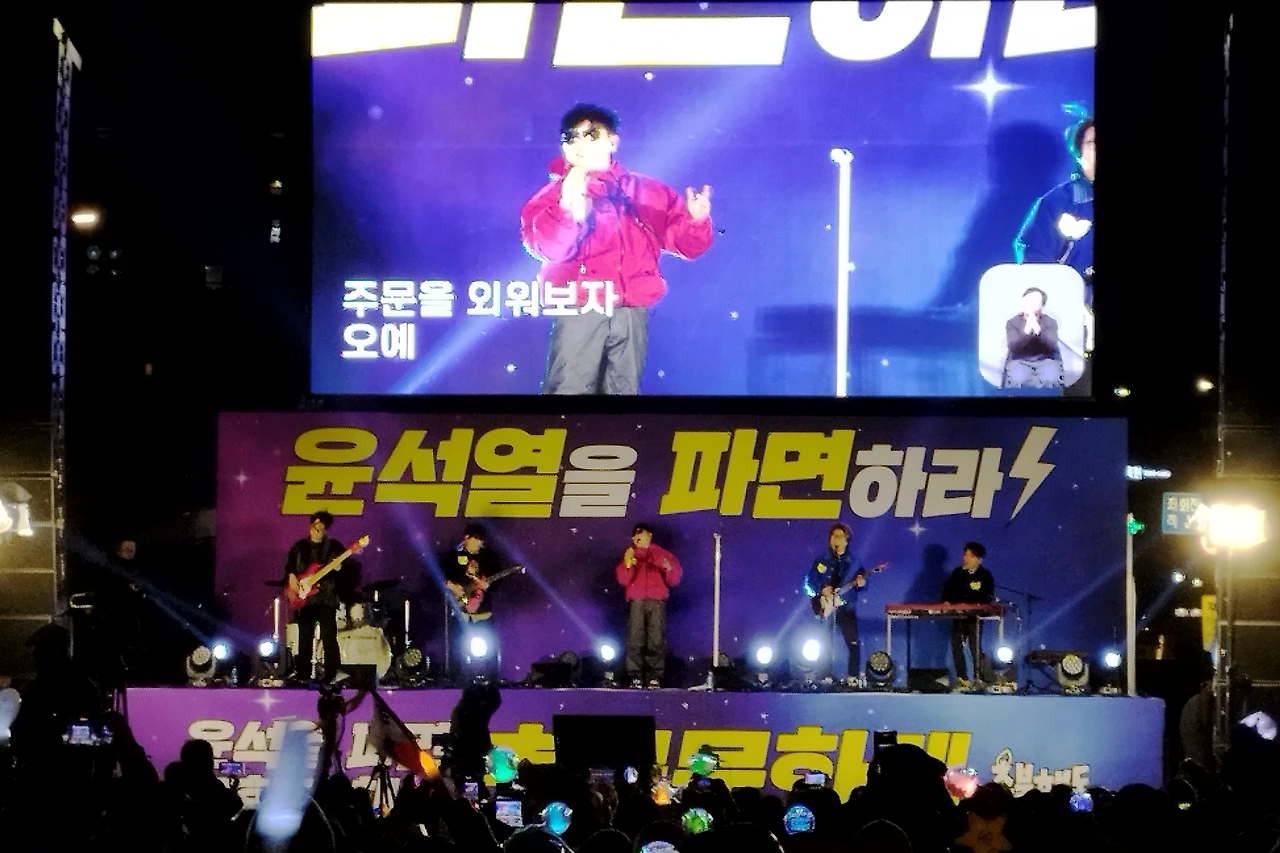슬램덩크와 농구대잔치에 미쳐 있던 중학생 시절, 이승환의 '덩크슛'은 내겐 찬송가와도 같았다. 당시 샀던 이승환 3집 테이프가 정말 다 늘어나서 너덜거릴 때까지 돌려가며 들었던 그 노래를, 이 혼돈한 시대에 광장에서 전혀 다른 메시지로 듣게 될 줄 그땐 상상이나 했을까. 헌법재판관들과 동년배인 이승환이 더 이상 노구를 이끌고 추운 거리에 나오지 않도록, 언제 이런 미친 시절이 있었냐는 듯 공연장에서 미친 듯이 다 같이 즐기는 날이 오도록 주문을 외워보자.