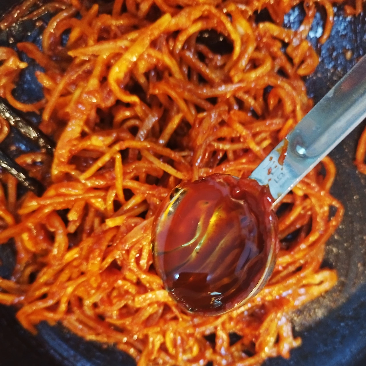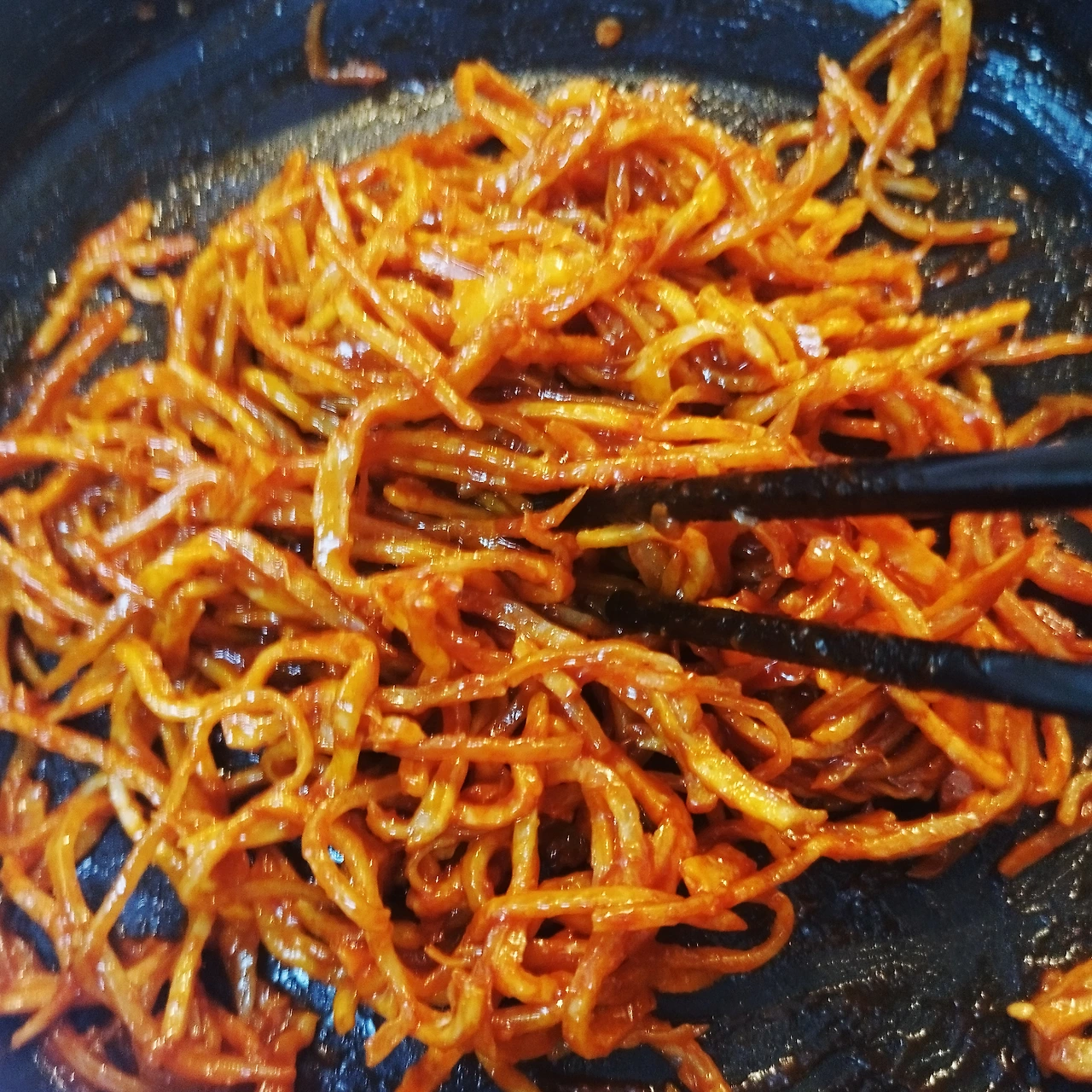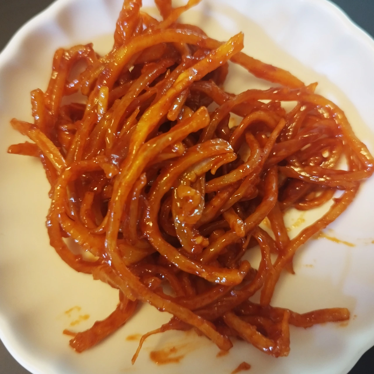 만드는 법은 역시나 쉽다. 나 같은 요리 초보도 쉽게 접근할 수 있을 정도의, 레시피라고 말하기도 멋쩍은 조리 과정이다. 진미채를 2~4등분으로 자르고 마요네즈에 살짝 버무려 부드럽게 만든다. 프라이팬에 고추장과 설탕, 간장, 다진 마늘, 물(약간)을 넣어 졸인 뒤 진미채를 넣고 비빈다. 다 비빈 후 올리고당과 참기름을 넣어 다시 한번 비벼주면 그걸로 끝. 다진 마늘을 넣지 않으면 진미채가 그냥 달기만 하고 별 맛이 없으니, 반드시 다진 마늘을 넣어줘야 한다. 나름의 킥이랄까.