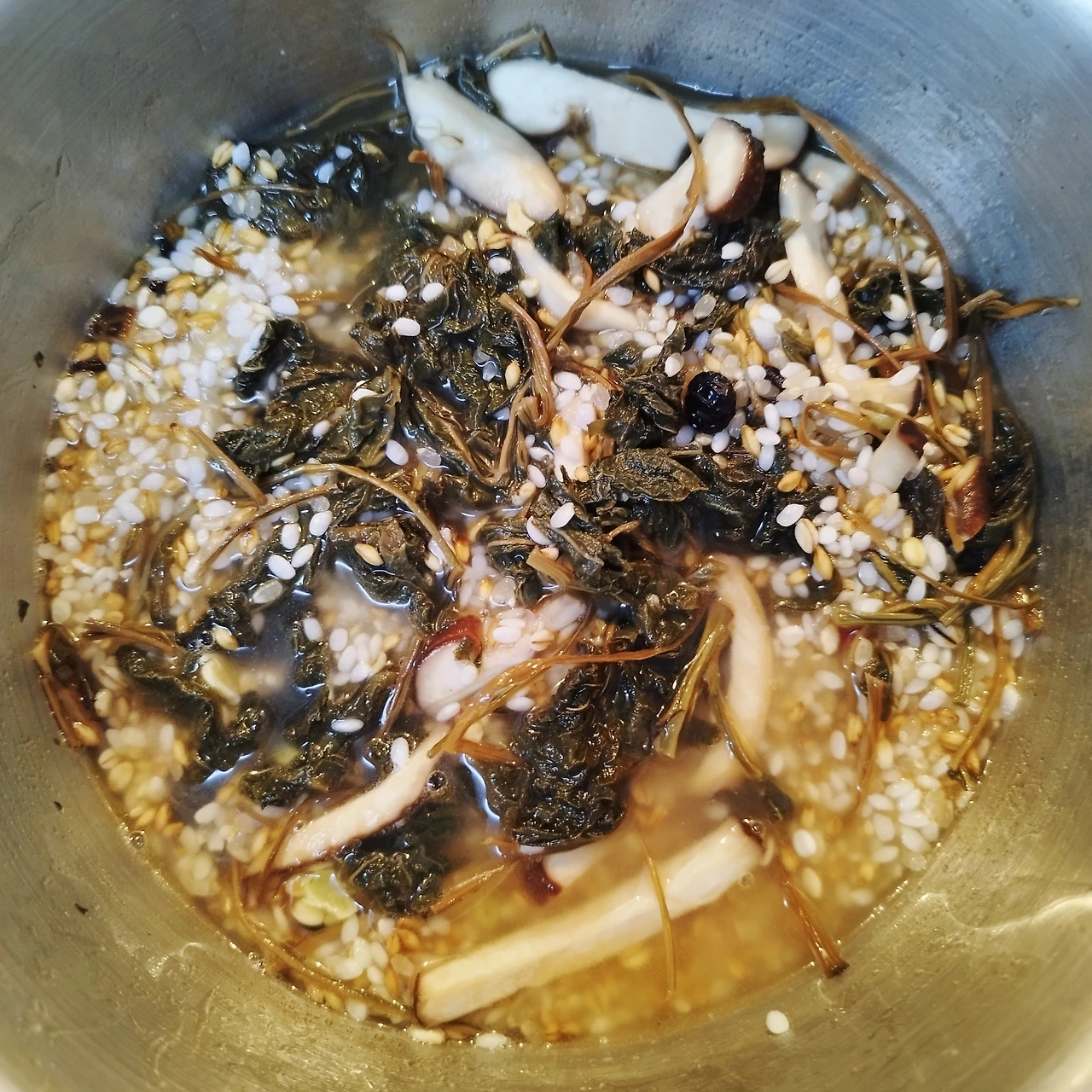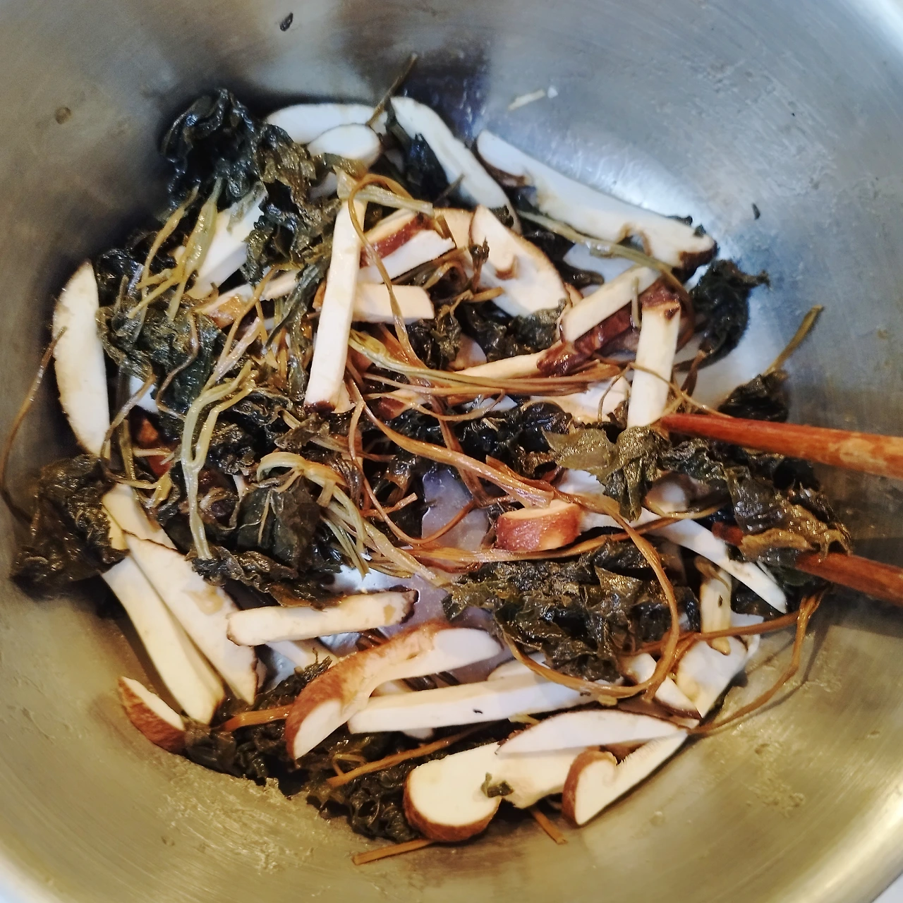 요리 과정은 심플하다 못해 간소하기 그지없다. 취나물을 물에 오래 불린 뒤에 채를 썬 표고버섯과 함께 간장과 참기름에 볶고(이때 풍겨 나오는 향이란 정말...ㅠ), 불린 쌀을 냄비에 넣은 뒤, 나물 불린 물을 붓고 뚜껑을 덮어 약 15분간 약한 불로 쪄내면 그걸로 끝이다. 참 쉽죠?
