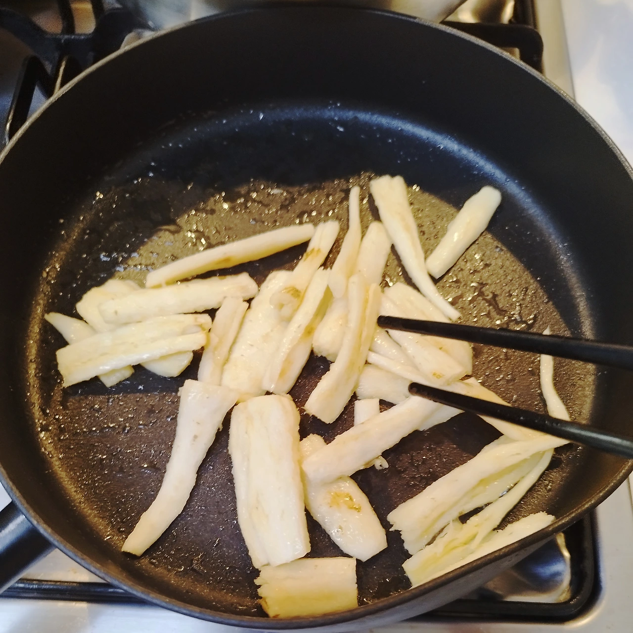 더덕구이의 또 하나의 난점이 있다면, 다듬는 과정에서 나오는 더덕의 진액 때문에 손이 찐득찐득해진다는 것. 물로 씻어도 잘 안 닦여져서 깔끔한 성격이신 분들에겐 신경 쓰이는 부분일 수 있겠다. 만약 그런 느낌을 겪기 싫으시다면 더덕 손질할 땐 비닐장갑을 끼고 하시는 게 어떨까 싶다. 아무튼 이런 과정을 거쳐 완성된 더덕구이는 더덕 특유의 아삭한 식감에 양념도 잘 배어 꽤 그럴듯했다.(뿌듯) 어린 시절엔 그다지 좋아하지 않던 더덕구이를 이렇게 정성스레 만드는 날이 올 줄은 나도 몰랐다. 이렇게 나이를 먹어간다.