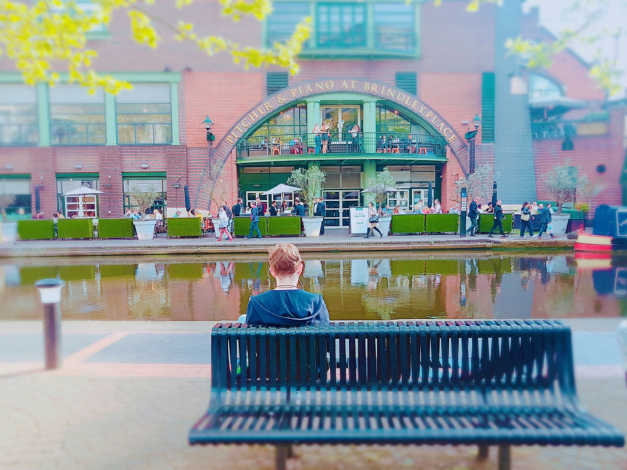 좋은 건 천천히 오래 봐야 하는 법. 그 불변의 진리를 실천하는 일은 어렵지 않았다. 주위를 둘러본 뒤, 전망 좋은 벤치에 서둘러 자리를 잡았다. 벤치마다 운하의 풍경을 즐기는 사람들이 가득했는데, 운 좋게 빈 벤치가 하나 남아 있었다. 그곳에 앉아 운하를 바라보니 도시의 움직임이 고스란히 느껴졌다. 운하의 찰랑임을 따라 버밍엄의 풍경들이 일렁이고, 다시금 도서관에서의 여운이 밀물처럼 스며들었다. 어쩌면 단 한 번 뿐일지도 모르는 애틋한 순간처럼!