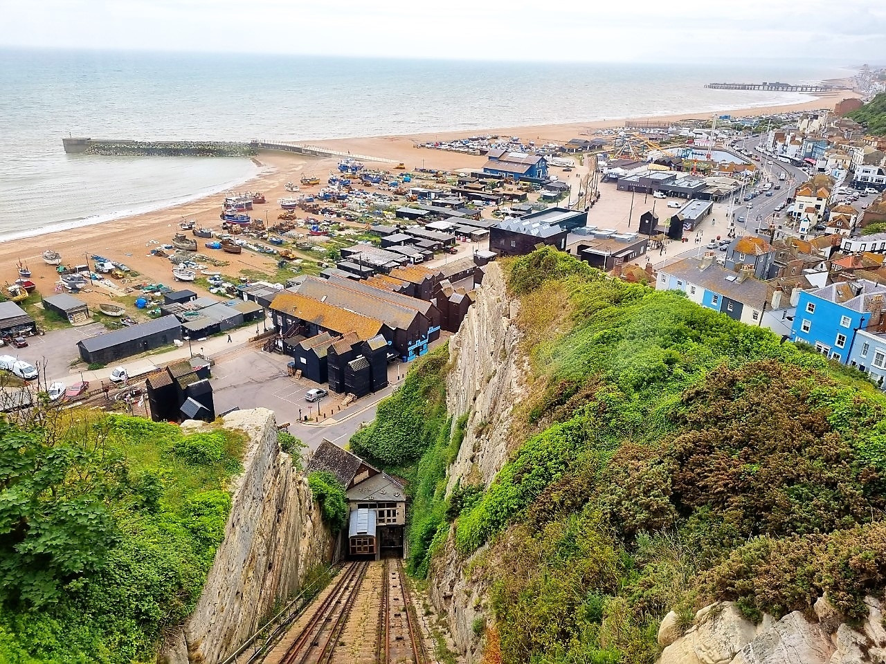 헤이스팅스로 가는 길이 유독 설렌 이유도 기차 덕분이었다. 영국의 남쪽 이스트서식스주에 위치한 작은 해안마을 헤이스팅스. 번잡한 대도시의 소음에 지칠 때면 늘 바다를 품고 있는 소도시가 그리웠다. 더욱이 헤이스팅스는 조금은 색다르게 바다를 볼 수 있어 특별한 곳. 푸니쿨라를 타고 푸른 언덕에 오르면 눈앞에 끝없는 바다가 펼쳐진다니! 이 또한 어떤 설명이 더 필요할까?